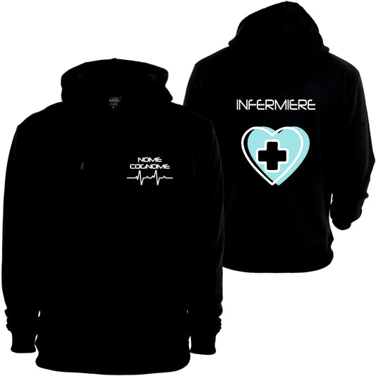 Felpa Cappuccio Uomo o Donna Cotone Basic Super vestibilità Top qualità - Infermiere Cuore Azzurro - Personalizzata con Nome