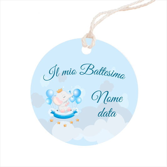 GLOBAL Bigliettini Bomboniera per Battesimo Personalizzato - ELEFANTE BIMBO - Bigliettini Bomboniera con piega, Bigliettini Bomboniera tondo, Personalizzati con Nome e Data, MADE IN ITALY