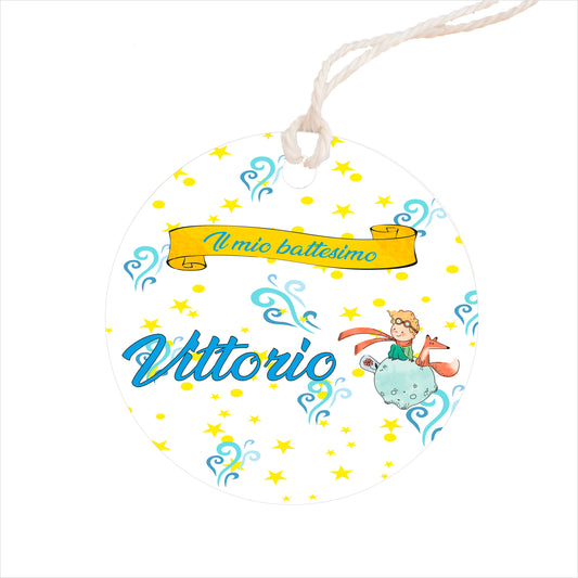 GLOBAL Bigliettini Bomboniera per Battesimo Personalizzato - PICCOLO PRINCIPE - Bigliettini Bomboniera con piega, Bigliettini Bomboniera tondo, Personalizzati con Nome e Data, MADE IN ITALY