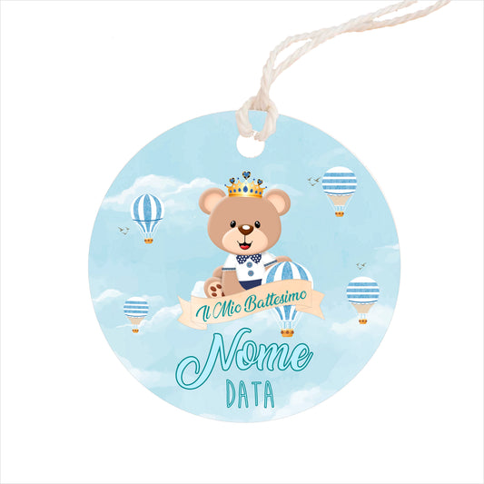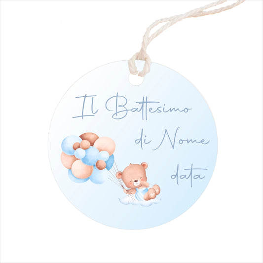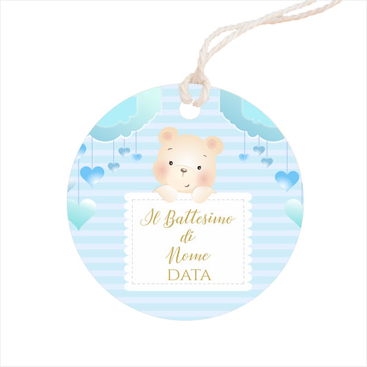 GLOBAL Bigliettini Bomboniera per Battesimo Personalizzato - ORSETTO BIMBO - Bigliettini Bomboniera con piega, Bigliettini Bomboniera tondo, Personalizzati con Nome e Data, MADE IN ITALY