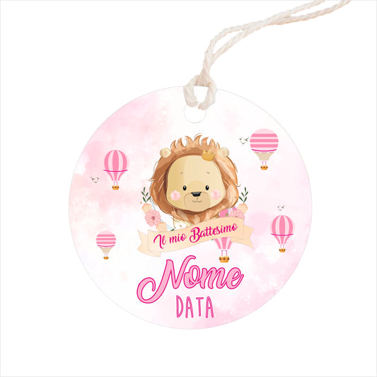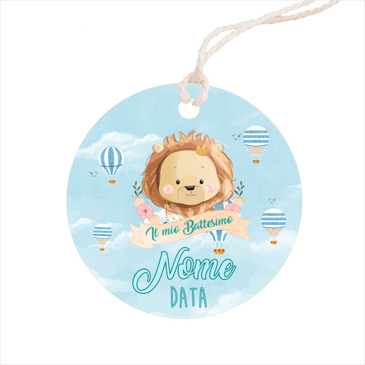 GLOBAL Bigliettini Bomboniera per Battesimo Personalizzato - LEONE BIMBO - Bigliettini Bomboniera con piega, Bigliettini Bomboniera tondo, Personalizzati con Nome e Data, MADE IN ITALY