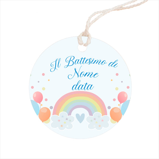 GLOBAL Bigliettini Bomboniera per Battesimo Personalizzato - ARCOBALENO - Bigliettini Bomboniera con piega, Bigliettini Bomboniera tondo, Personalizzati con Nome e Data, MADE IN ITALY