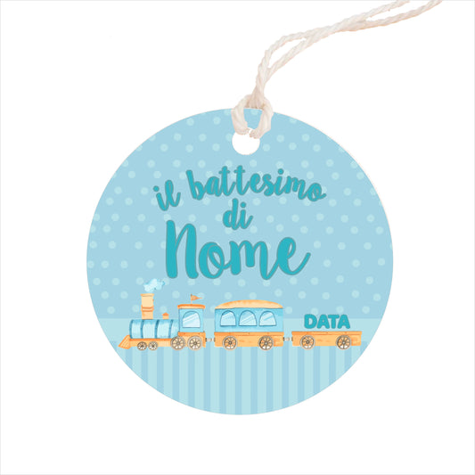 GLOBAL Bigliettini Bomboniera per Battesimo Personalizzato - TRENINO - Bigliettini Bomboniera con piega, Bigliettini Bomboniera tondo, Personalizzati con Nome e Data, MADE IN ITALY