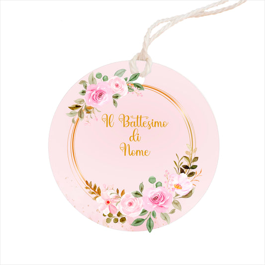 GLOBAL Bigliettini Bomboniera per Battesimo Personalizzato - CORNICE CON FIORI - Bigliettini Bomboniera con piega, Bigliettini Bomboniera tondo, Personalizzati con Nome e Data, MADE IN ITALY