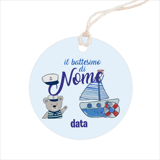 GLOBAL Bigliettini Bomboniera per Battesimo Personalizzato - BARCHETTA - Bigliettini Bomboniera con piega, Bigliettini Bomboniera tondo, Personalizzati con Nome e Data, MADE IN ITALY