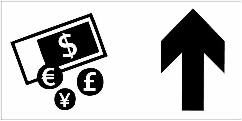 Cambio valuta - Freccia direzionale - CARTELLO SEGNALETICO UNI 7010 in Adesivo Resistente, Pannello in Forex, Pannello In Alluminio o in Plexiglas
