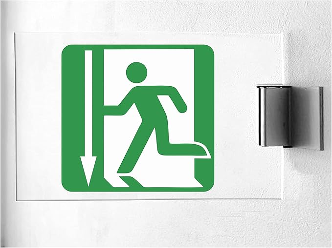 CARTELLO IN PLEXIGLASS A BANDIERA SEGNALETICO - uscita di emergenza giù - Con Supporto in alluminio & Stampa U.V.