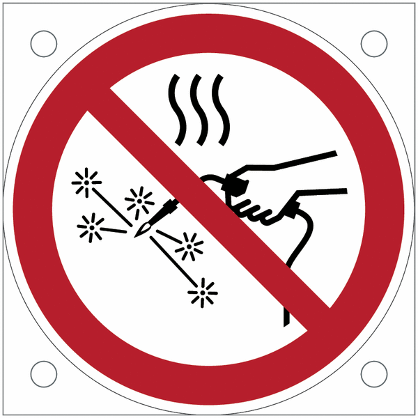 CARTELLO SEGNALETICO QUADRATO ISO 7010 - Vietato eseguire lavori a caldo - Adesivo Extra Resistente, Pannello in Forex, Pannello In Alluminio