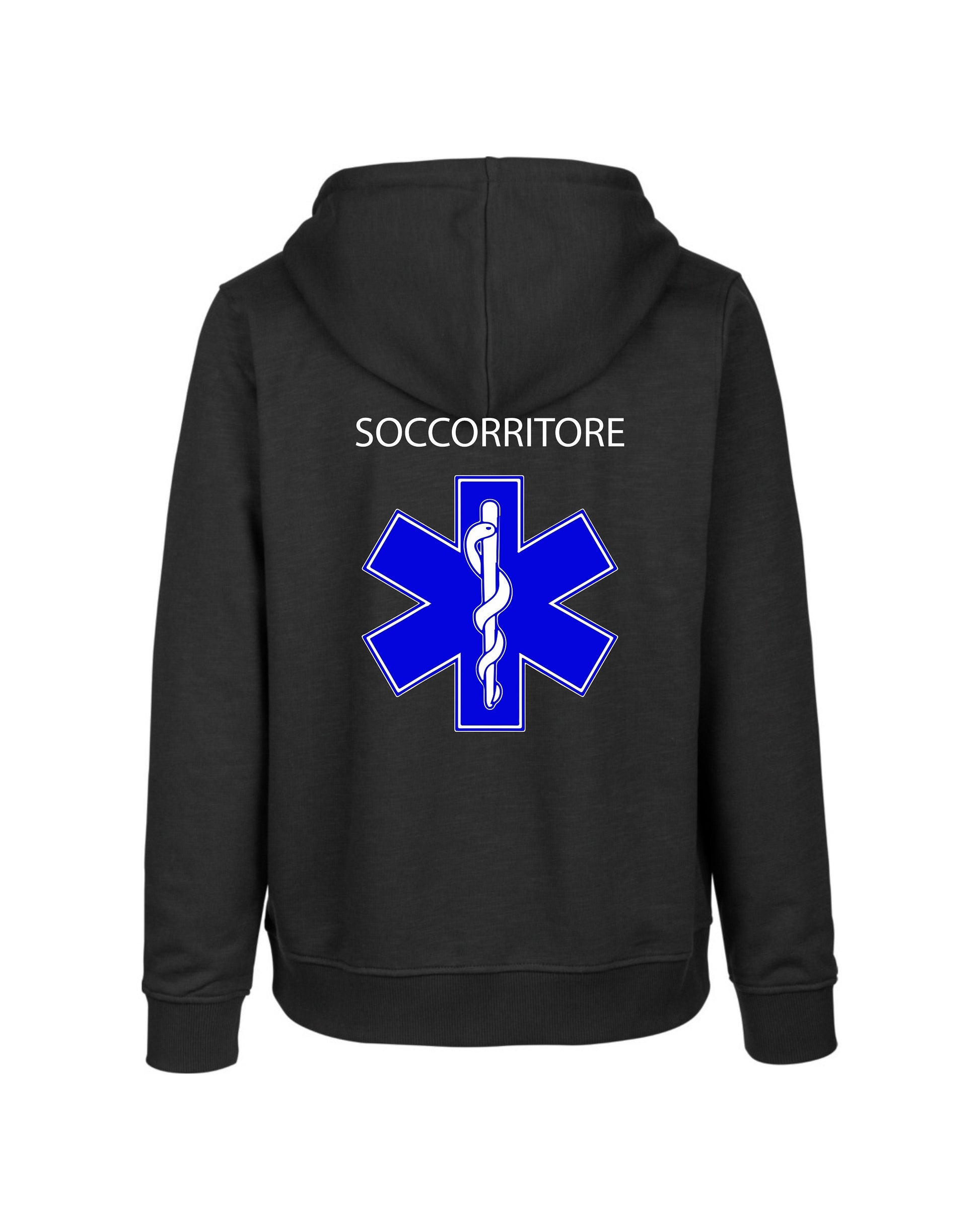 Felpa Cappuccio Uomo o Donna Cotone Basic Super vestibilità Top qualità - Ruolo soccorritore Croce Blu - Personalizzata con Nome