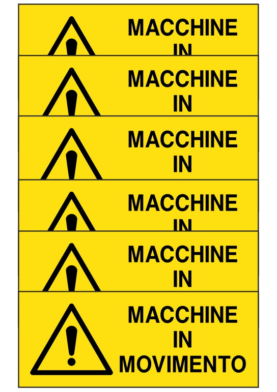 KIT DI 6 ADESIVI UNI - macchine in movimento - Pittogramma ISO 7010 Con Stampa Diretta U.V. (IDEALE ANCHE PER ESTERNO)