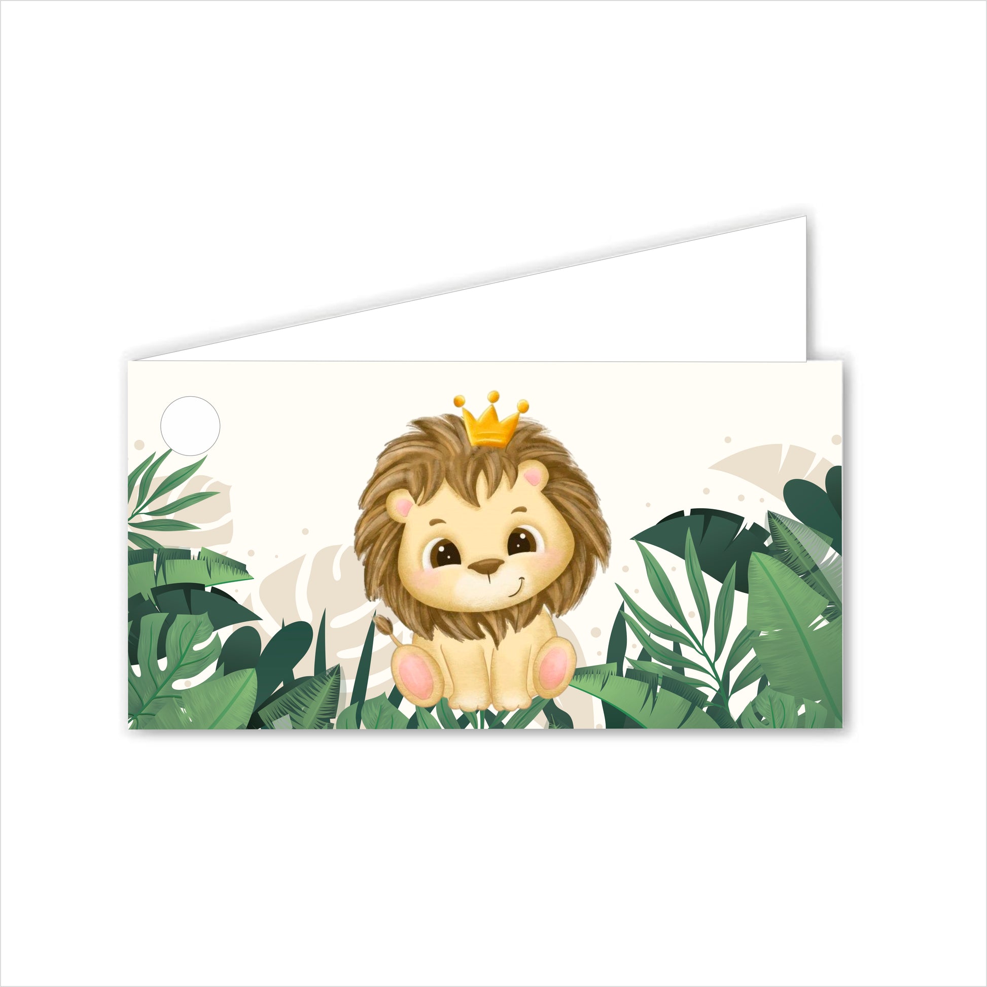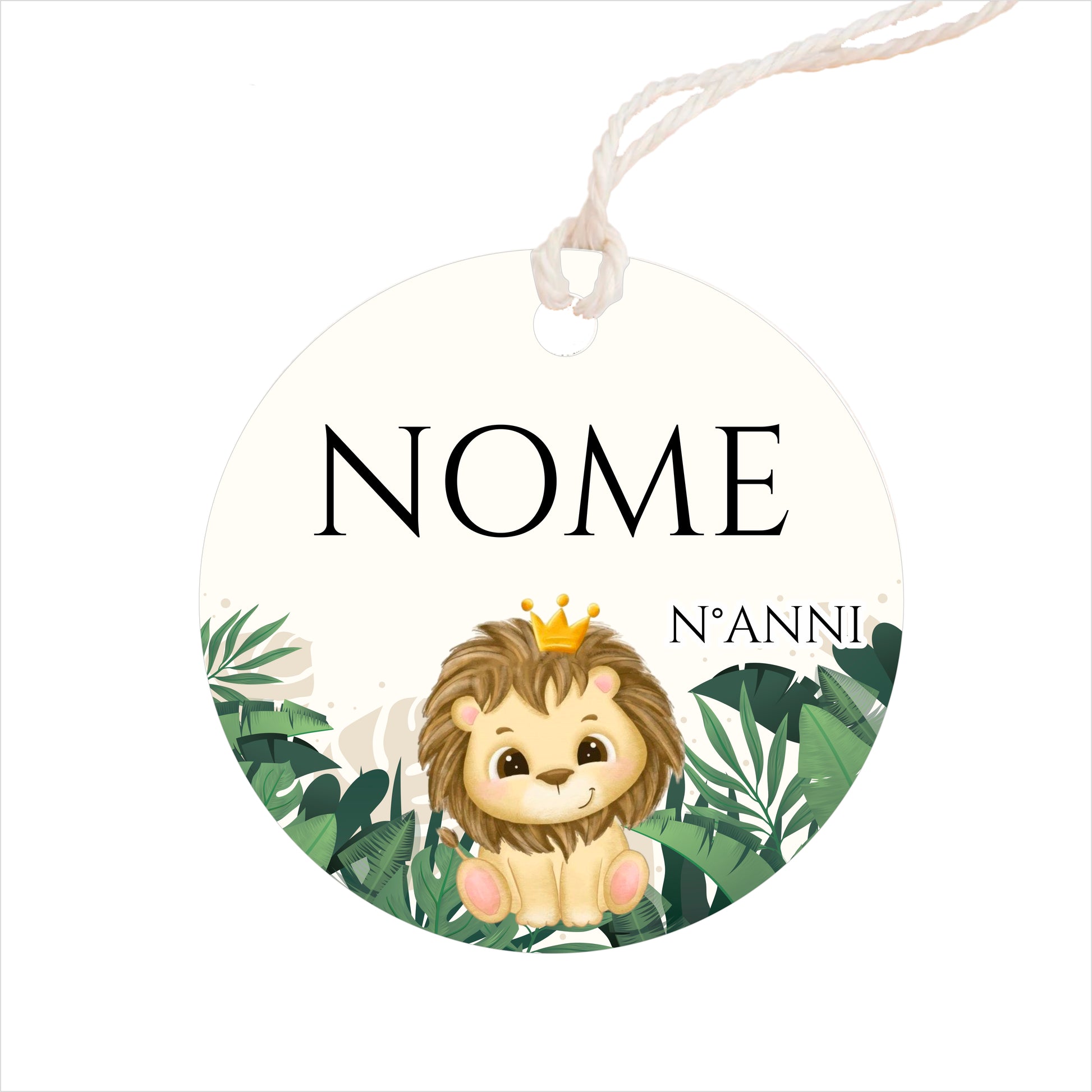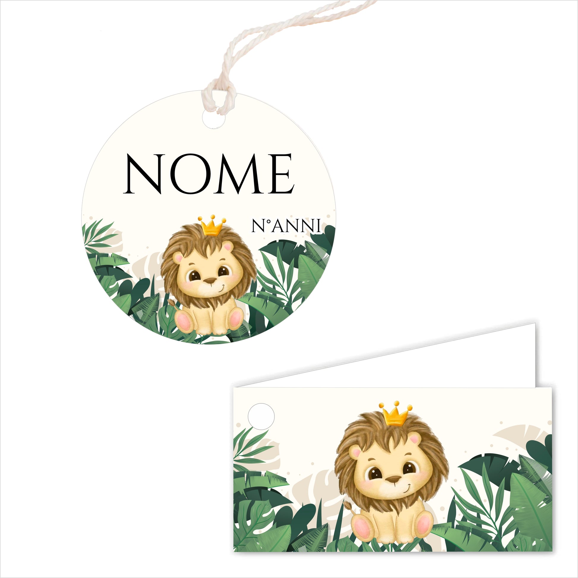 GLOBAL Bigliettini Bomboniera per Compleanno Personalizzato - LEONE - Bigliettini Bomboniera con piega, Bigliettini Bomboniera tondo, Personalizzati con Nome e Data, MADE IN ITALY
