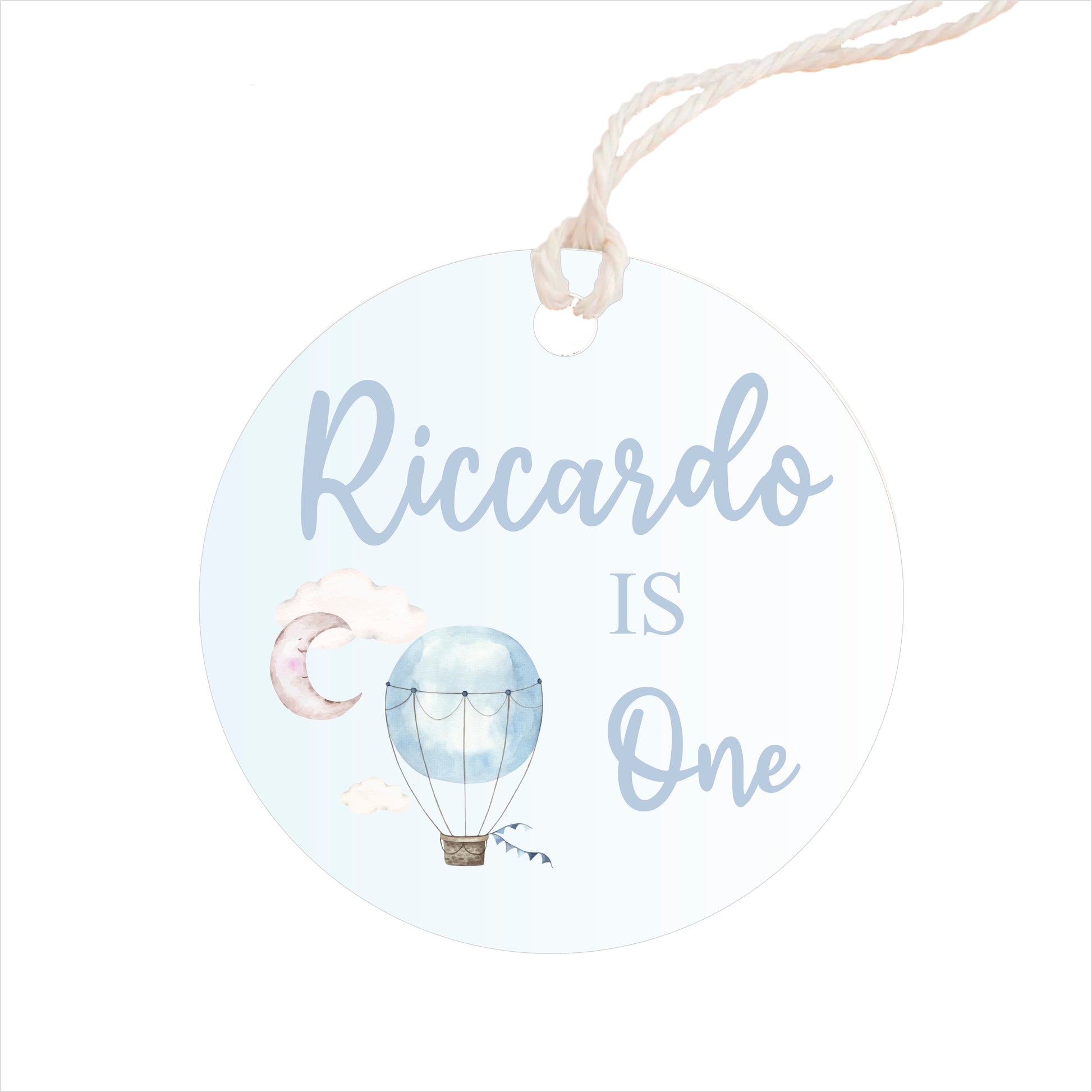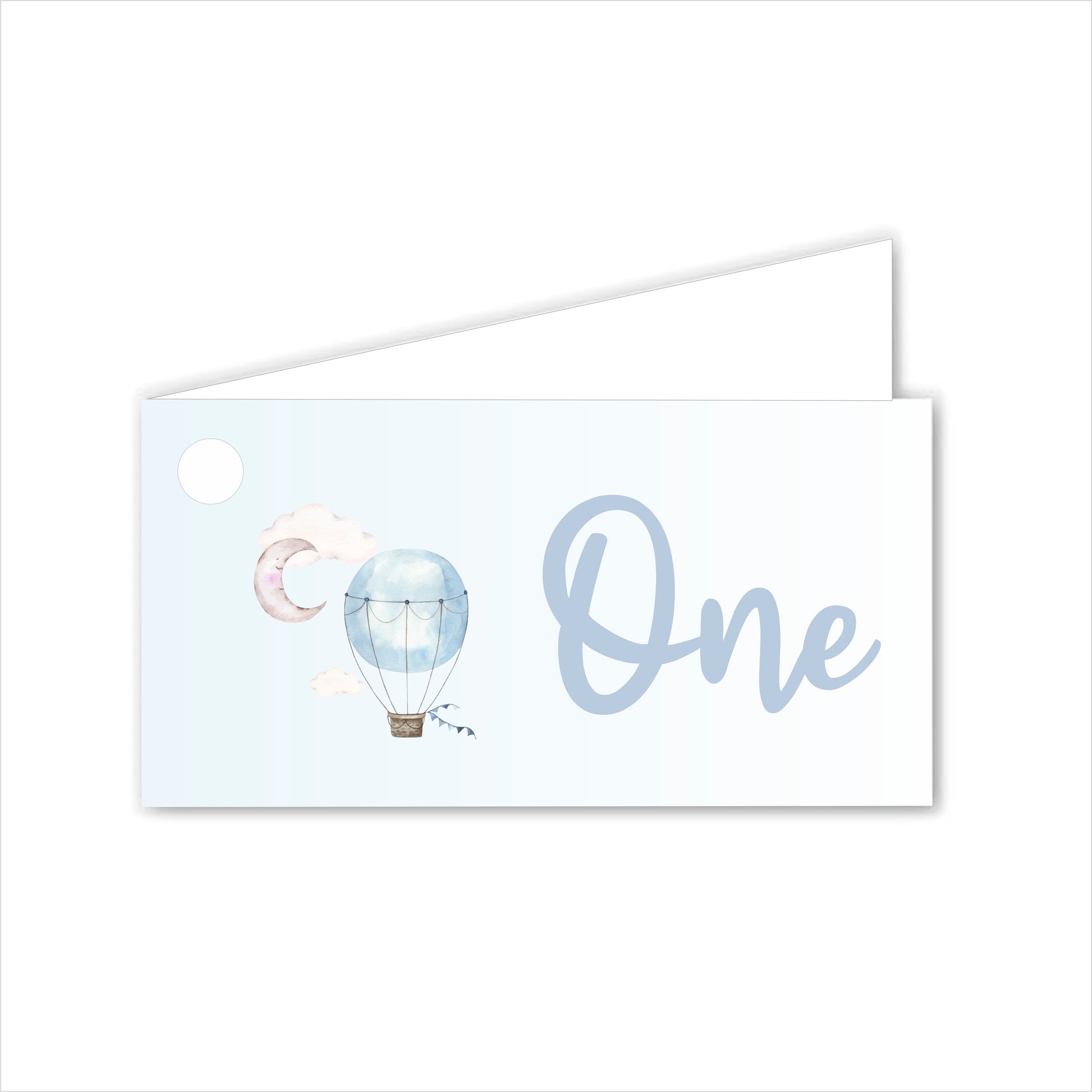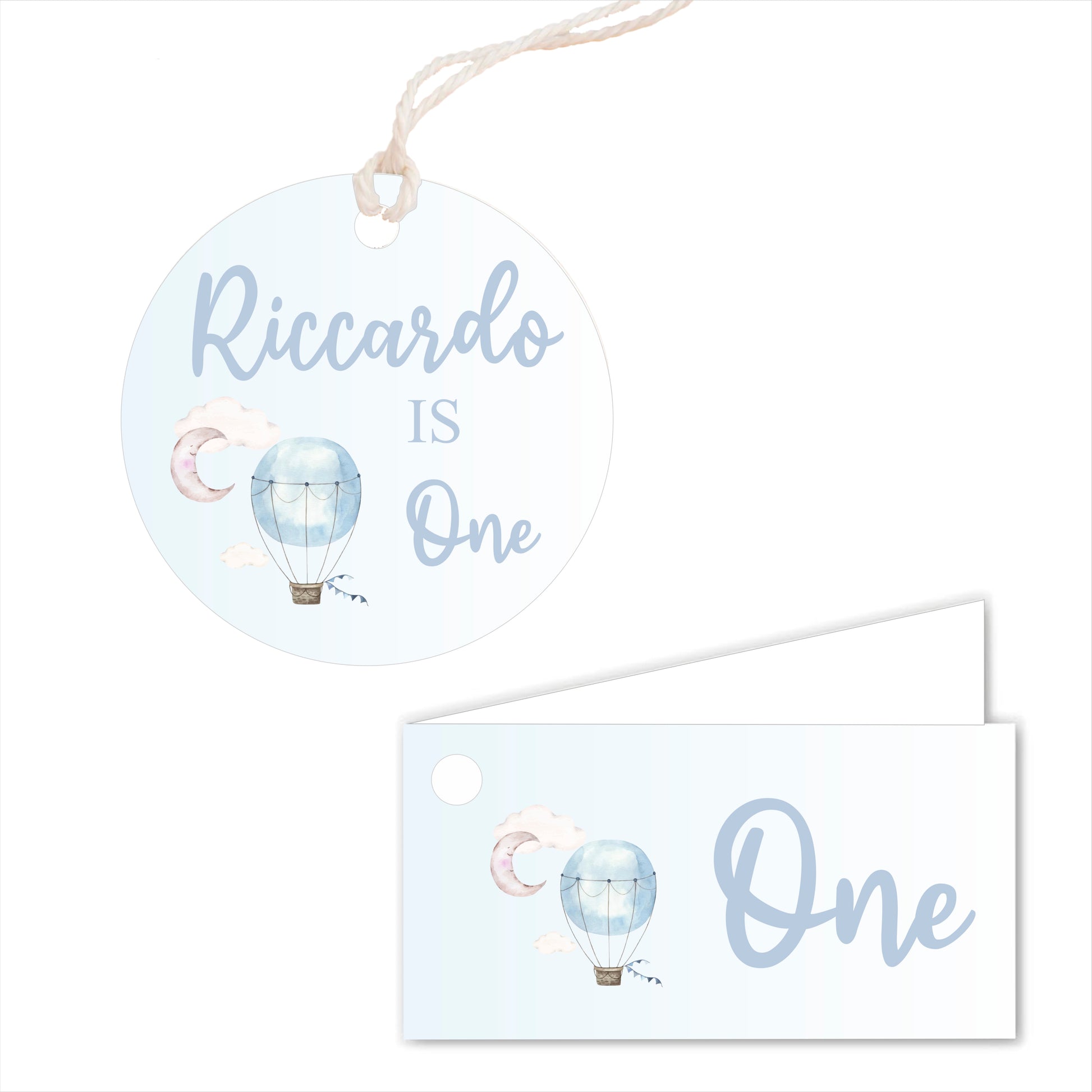 GLOBAL Bigliettini Bomboniera per Compleanno Personalizzato - MONGOLFIERA BIMBO - Bigliettini Bomboniera con piega, Bigliettini Bomboniera tondo, Personalizzati con Nome e Data, MADE IN ITALY