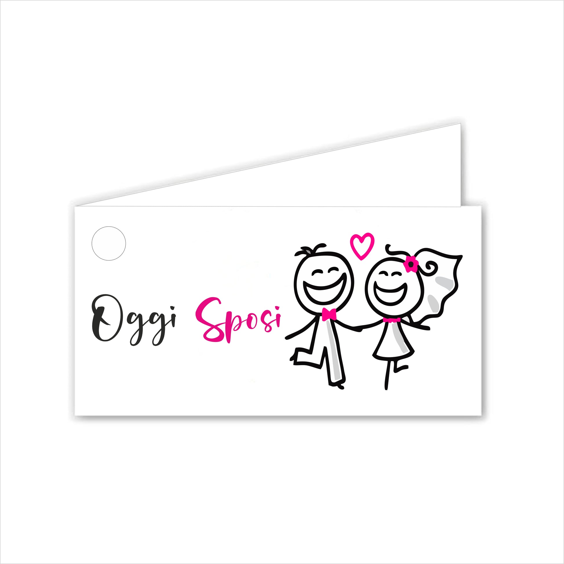 GLOBAL Bigliettini Bomboniera per Matrimonio Personalizzato - OGGI SPOSI MOD 3 - Bigliettini Bomboniera con piega, Bigliettini Bomboniera tondo, Personalizzati con Nome e Data, MADE IN ITALY