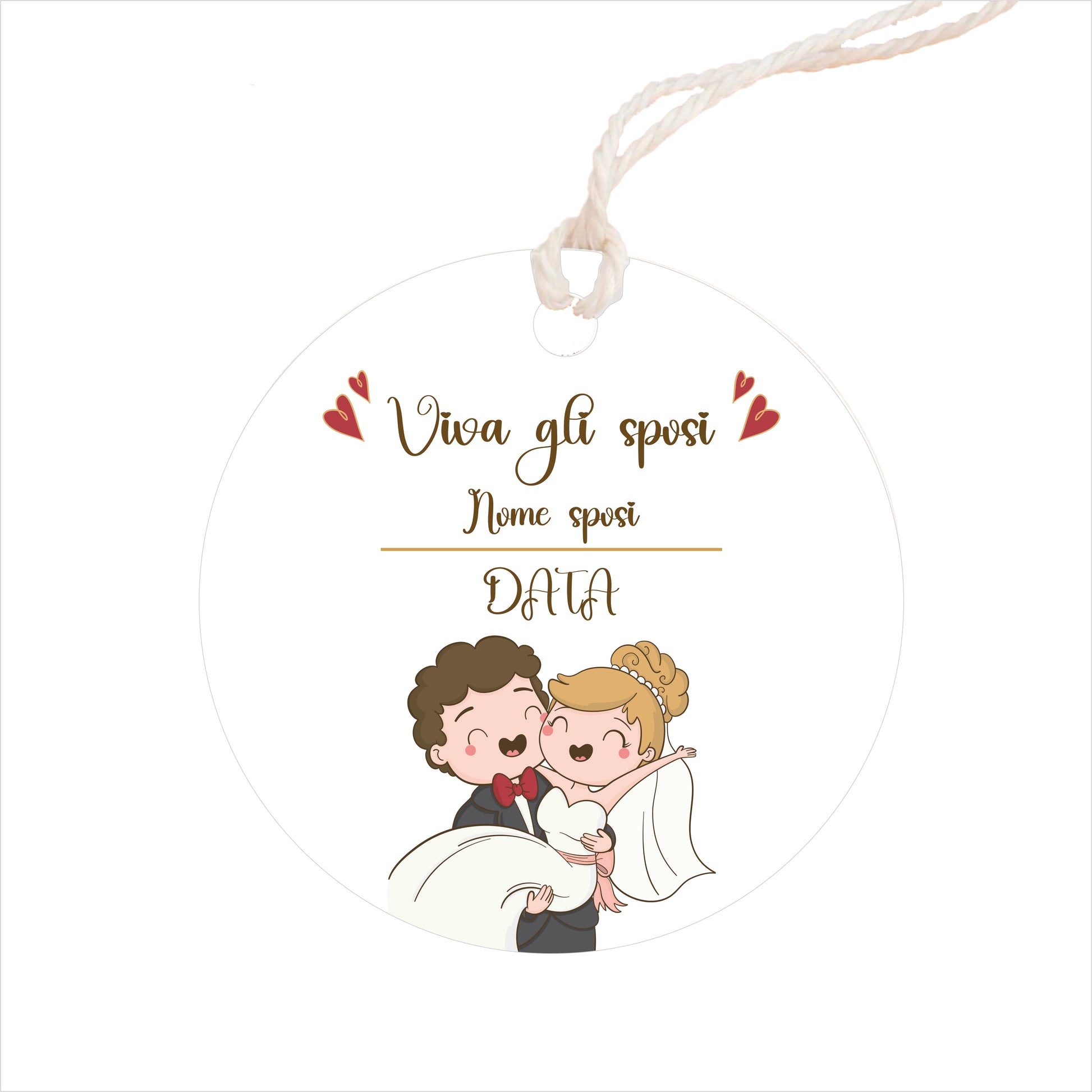 GLOBAL Bigliettini Bomboniera per Matrimonio Personalizzato - VIVA GLI SPOSI - Bigliettini Bomboniera con piega, Bigliettini Bomboniera tondo, Personalizzati con Nome e Data, MADE IN ITALY
