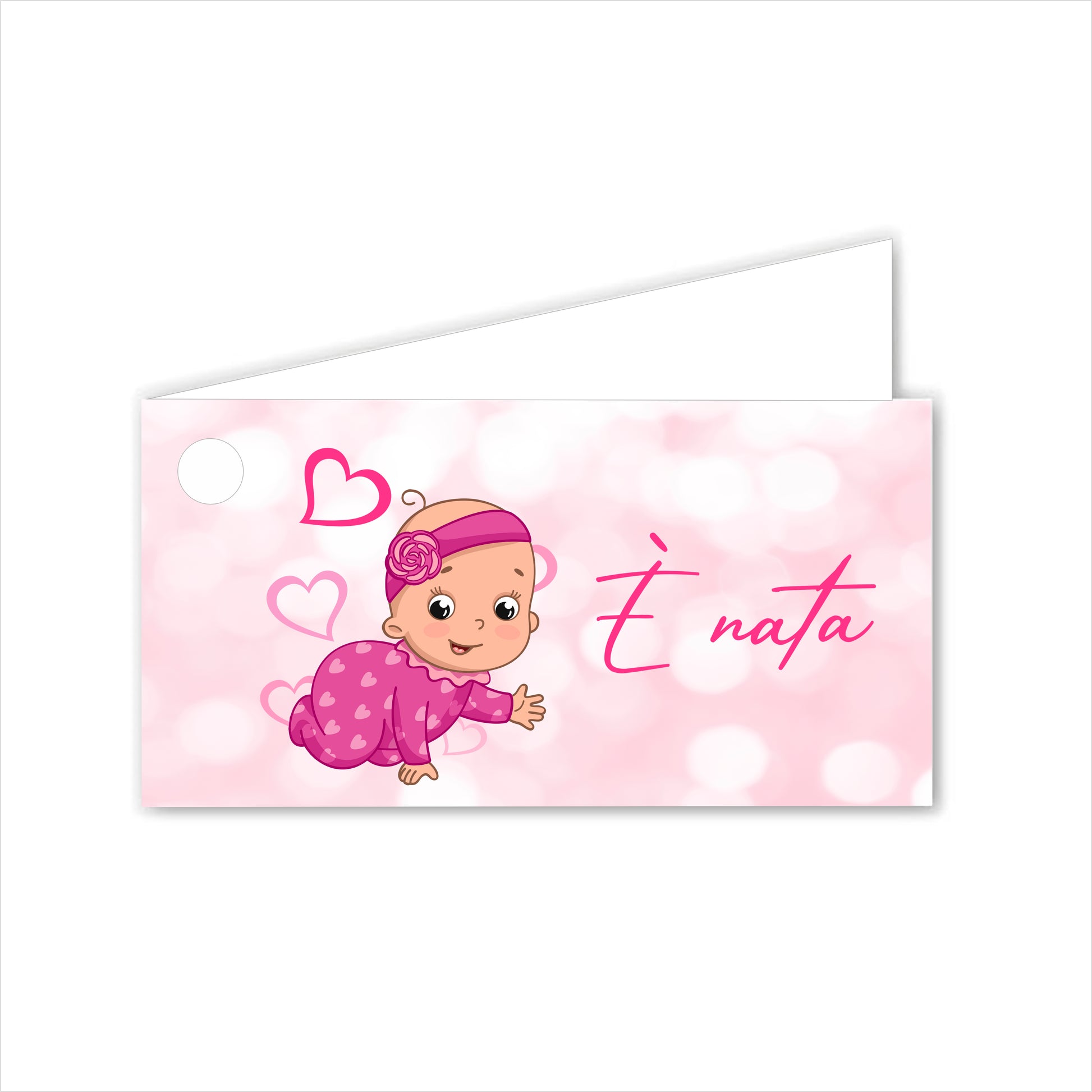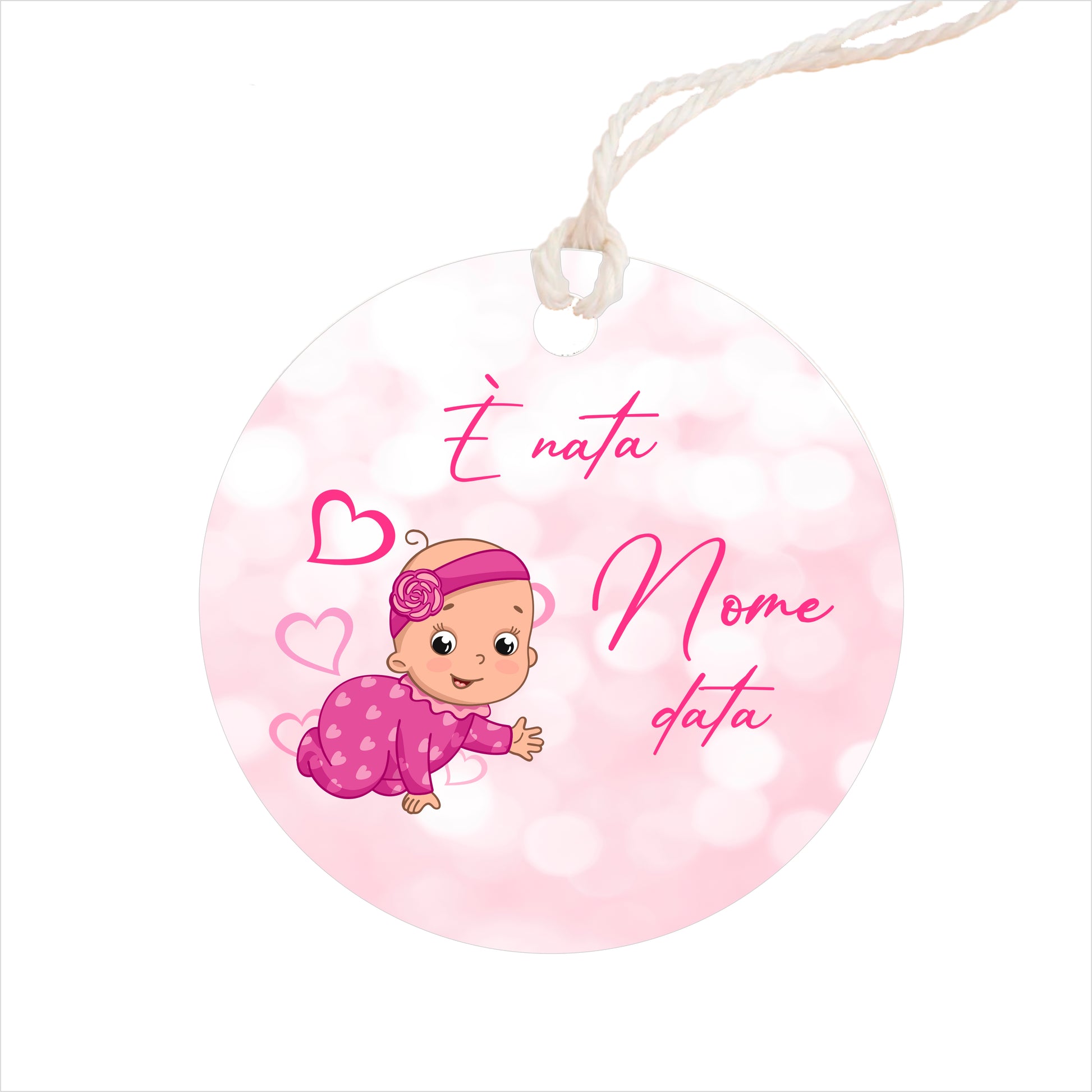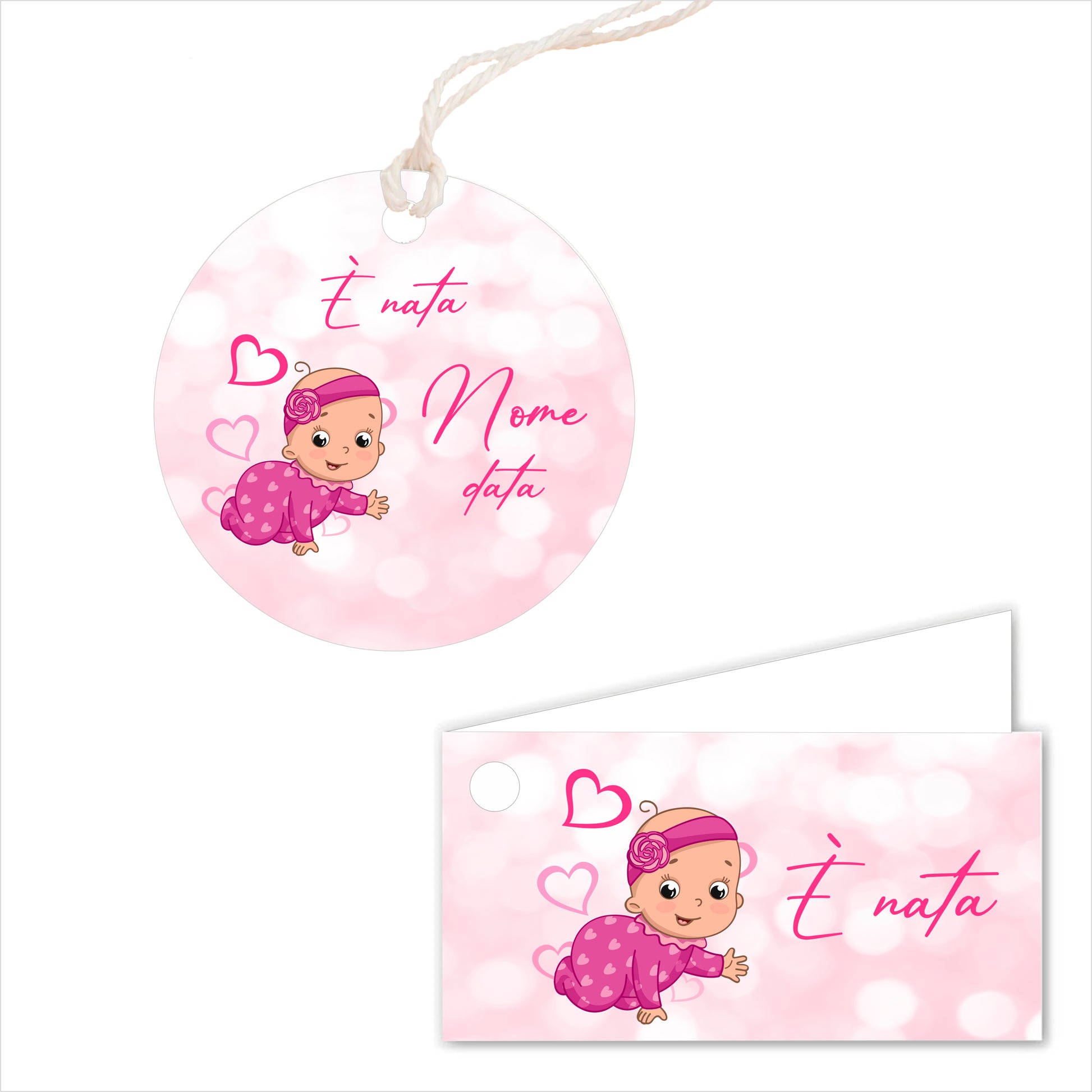 GLOBAL Bigliettini Bomboniera per Nascita Personalizzato - GATTONI BIMBA - Bigliettini Bomboniera con piega, Bigliettini Bomboniera tondo, Personalizzati con Nome e Data, MADE IN ITALY