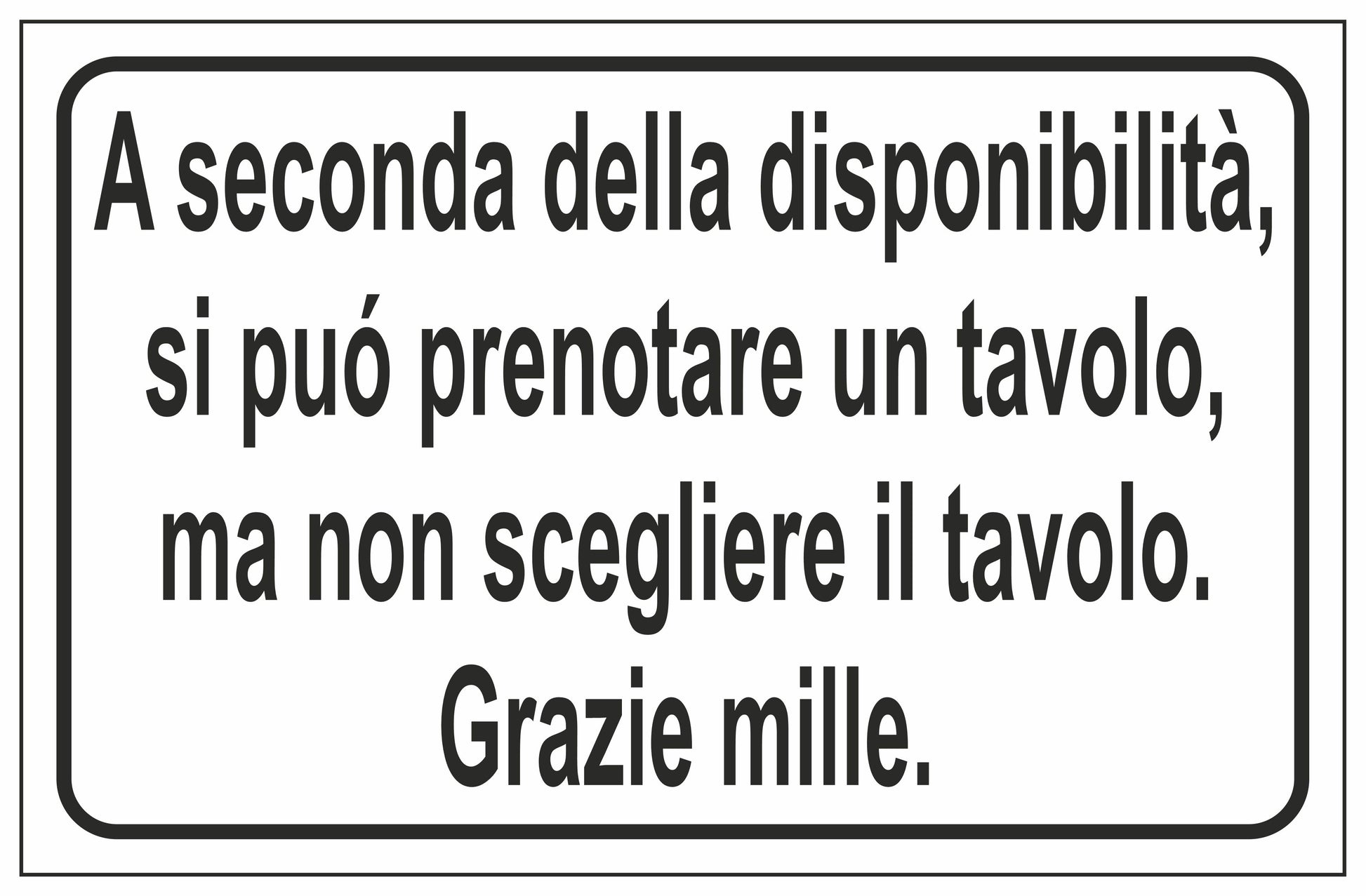 GLOBAL CARTELLO SEGNALETICO - A SECONDA DELLA DISPONIBILITÀ, SI PUÒ PRENOTARE UN TAVOLO, MA NON SCEGLIERE IL TAVOLO - Adesivo Extra Resistente, Pannello in Forex, Pannello In Alluminio