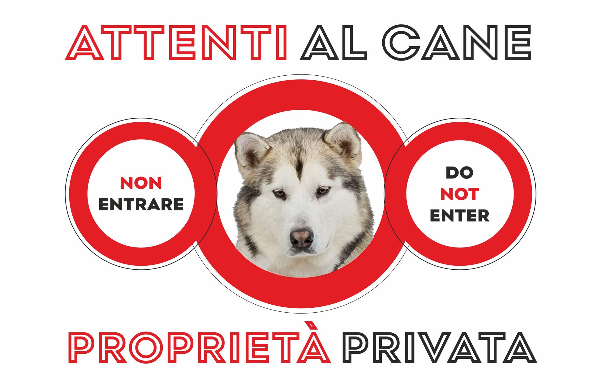 GLOBAL CARTELLO SEGNALETICO - ATTENTI al Cane Alaskan Malamute PROPRIETÀ PRIVATA - Adesivo Extra Resistente, Pannello in Forex, Pannello In Alluminio