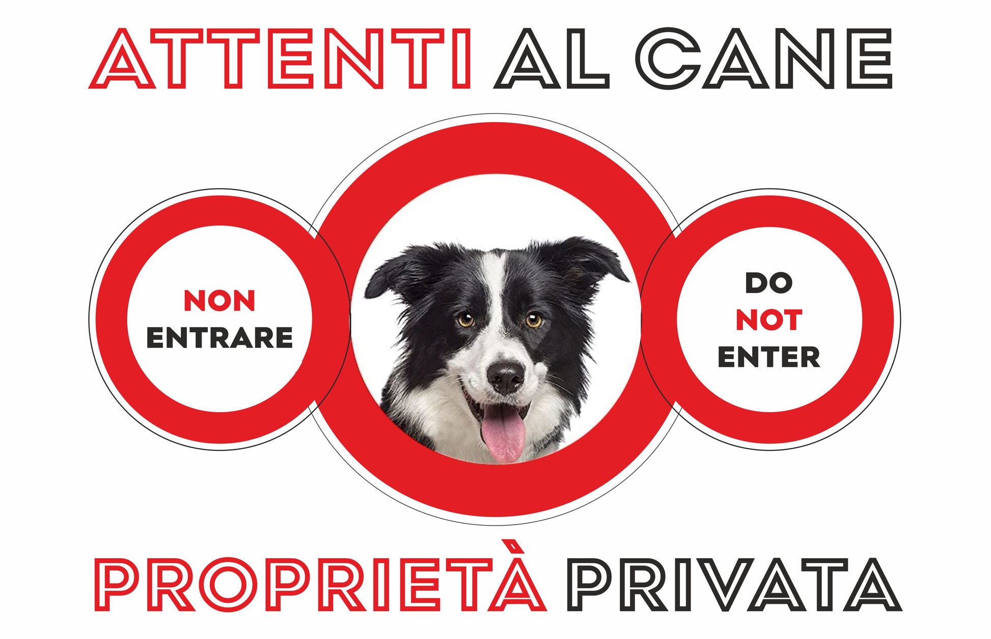 GLOBAL CARTELLO SEGNALETICO -ATTENTI AL CANE BORDER COLLIE - Adesivo Extra Resistente, Pannello in Forex, Pannello In Alluminio