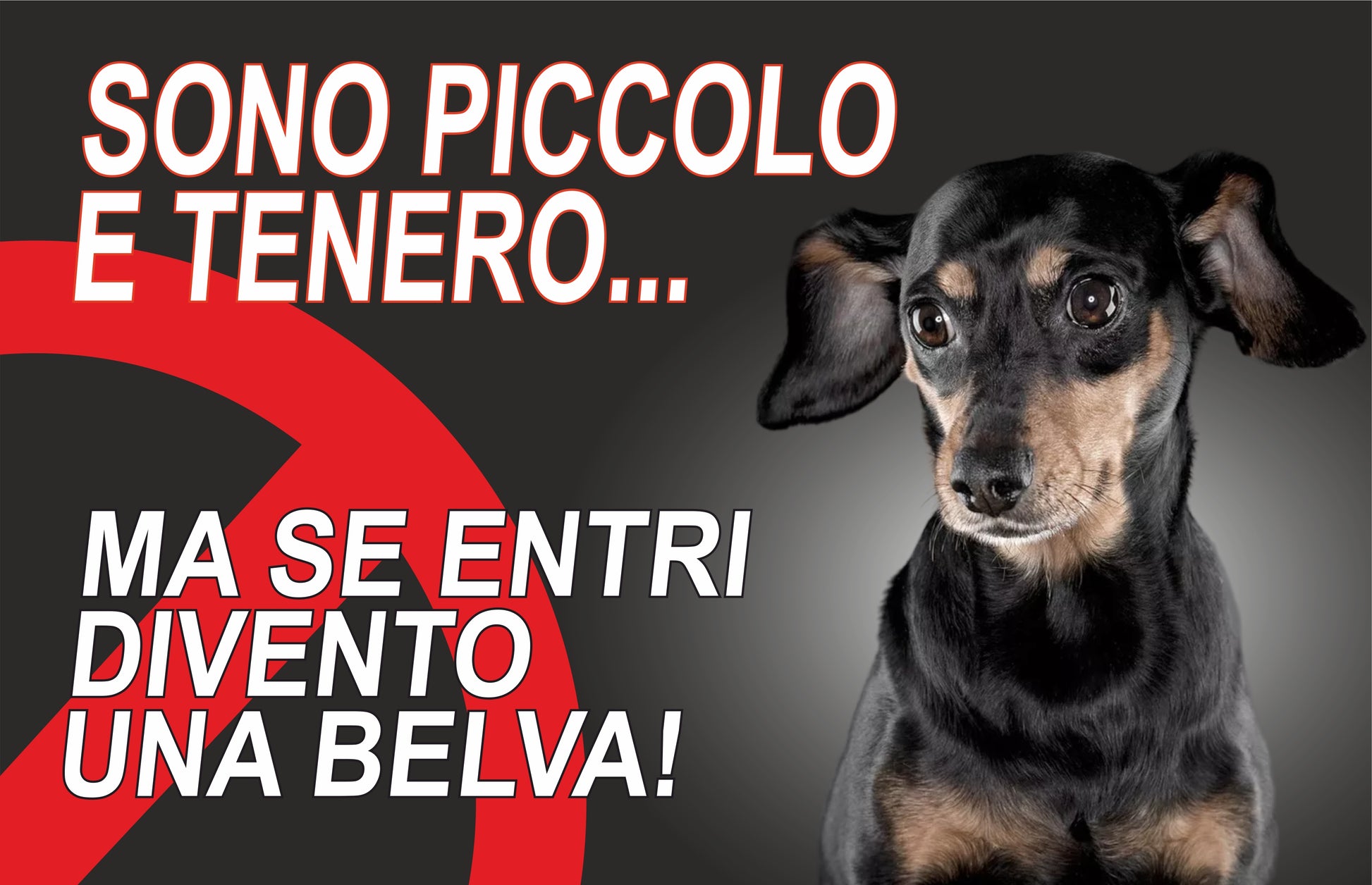 GLOBAL CARTELLO SEGNALETICO - ATTENTI AL CANE PINCHER SONO PICCOLO E TENERO - Adesivo Extra Resistente, Pannello in Forex, Pannello In Alluminio