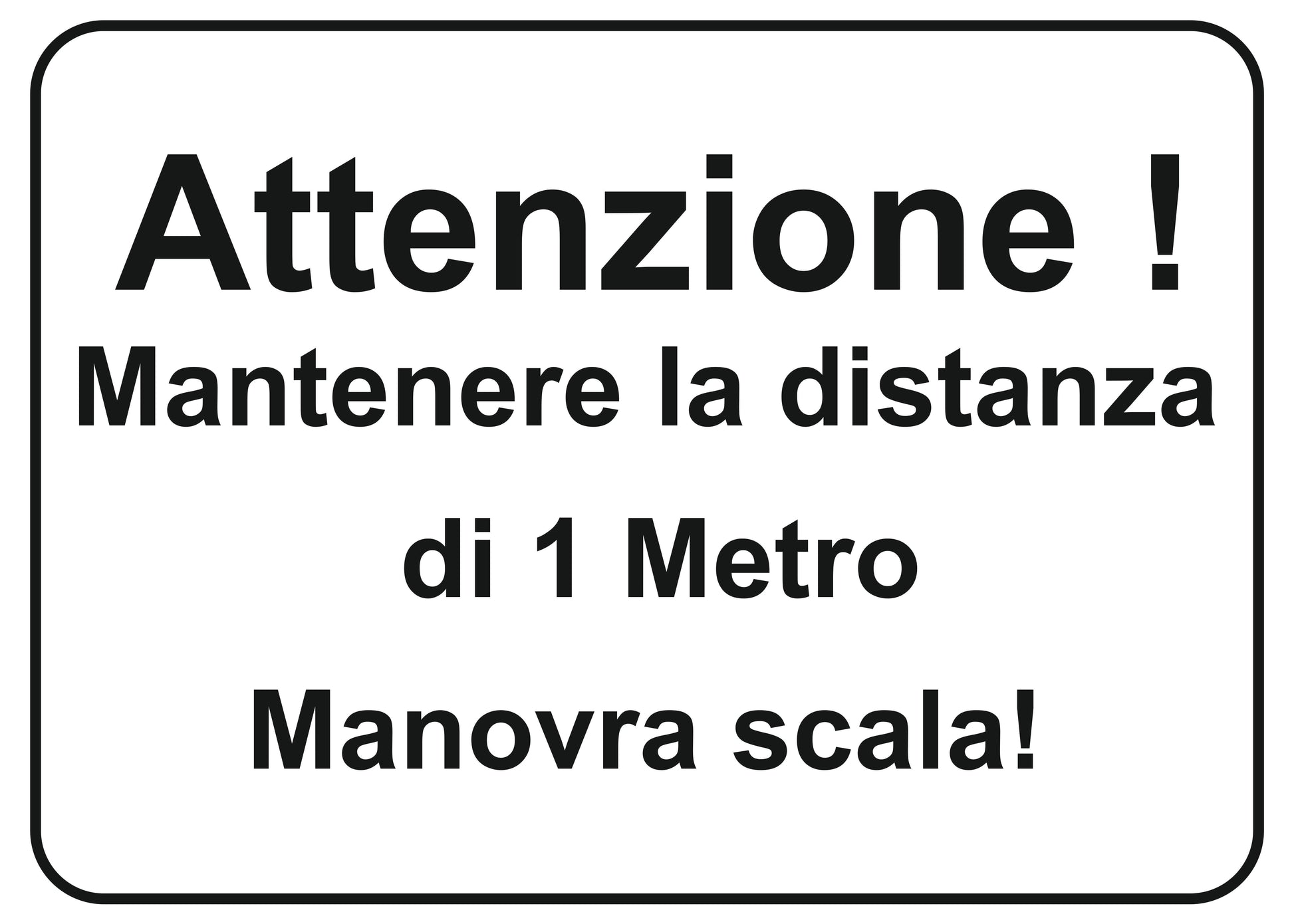 GLOBAL CARTELLO SEGNALETICO - attenzione mantenere la distanza di 1 metro manovra scala - Adesivo Extra Resistente, Pannello in Forex, Pannello In Alluminio