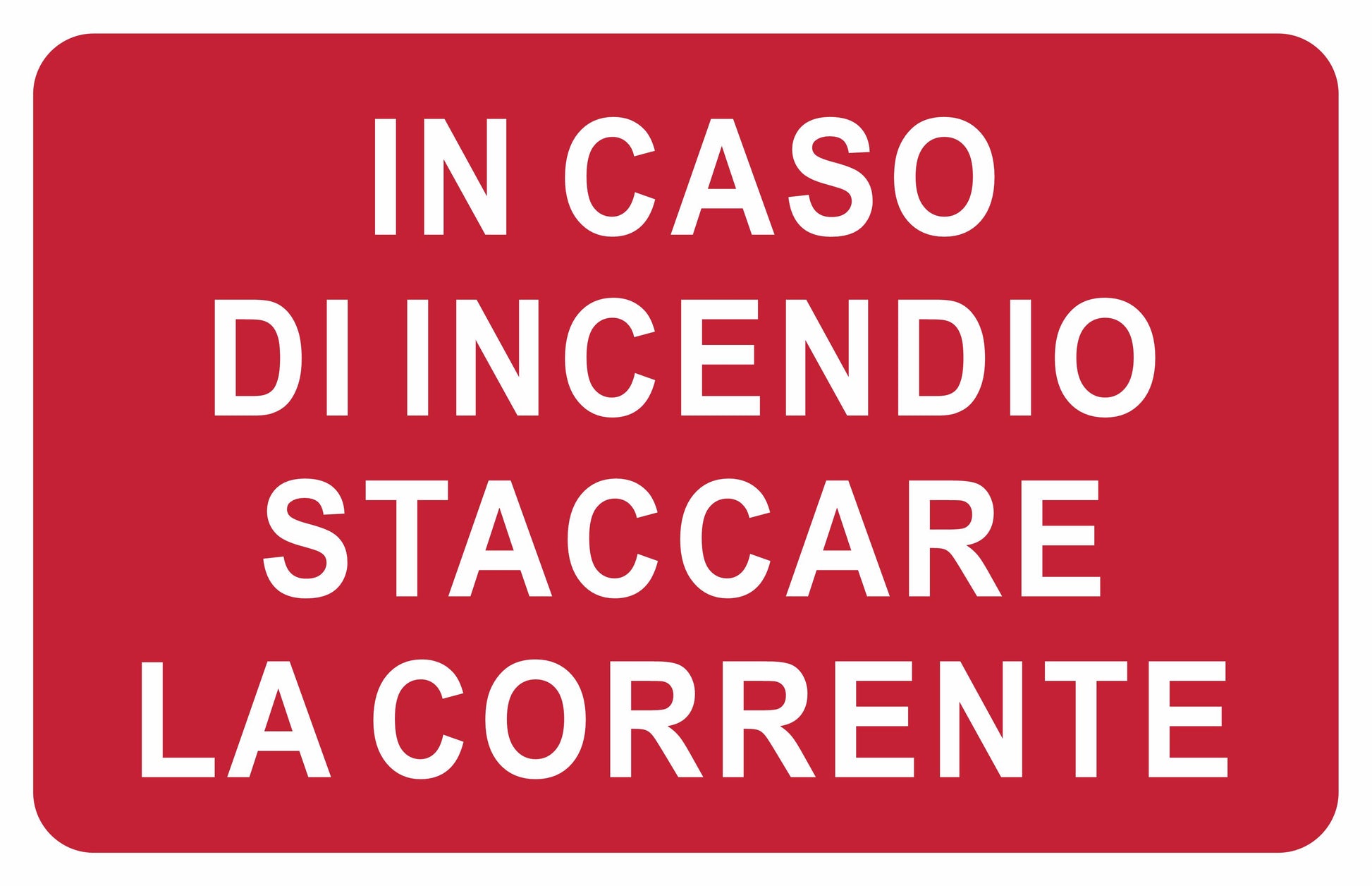 GLOBAL CARTELLO SEGNALETICO - In caso di incendio staccare la corrente - Adesivo Extra Resistente, Pannello in Forex, Pannello In Alluminio