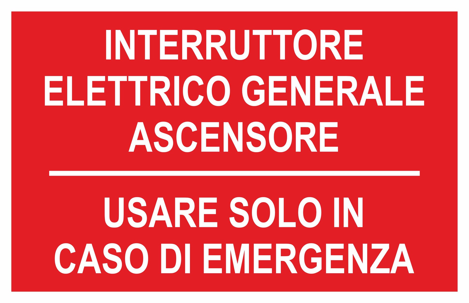 GLOBAL CARTELLO SEGNALETICO - INTERRUTTORE ELETTRICO GENERALE ASCENSORE - Adesivo Extra Resistente, Pannello in Forex, Pannello In Alluminio