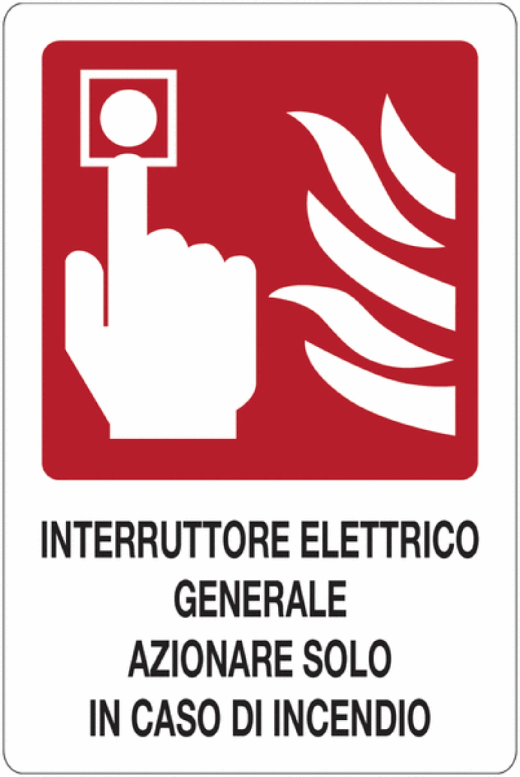 GLOBAL CARTELLO SEGNALETICO - Interruttore elettrico generale. Azionare solo in caso di incendio - Adesivo Extra Resistente, Pannello in Forex, Pannello In Alluminio