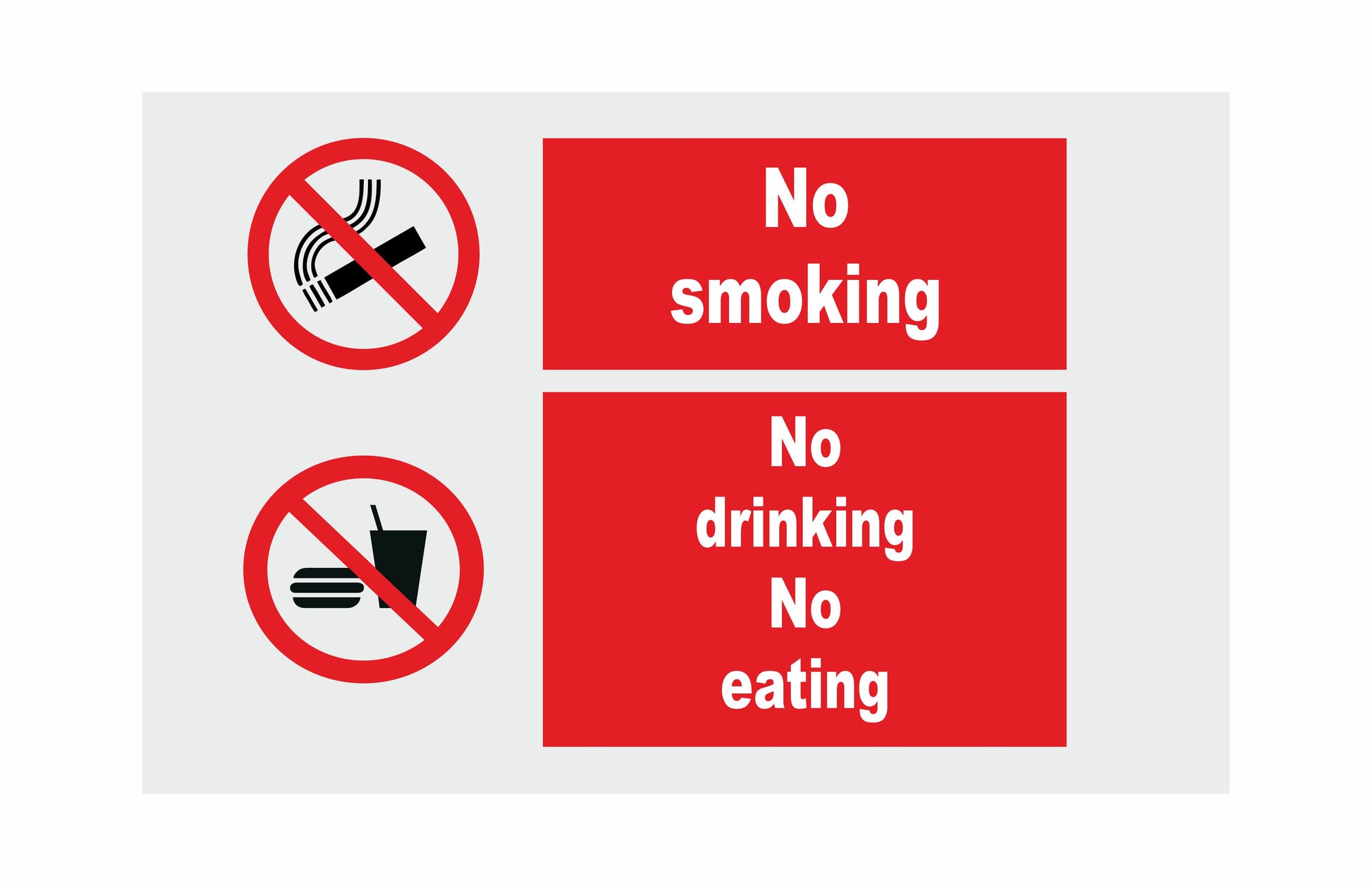 GLOBAL CARTELLO SEGNALETICO - No Smoking No Drinking No Eating Multi-Message - Adesivo Extra Resistente, Pannello in Forex, Pannello In Alluminio