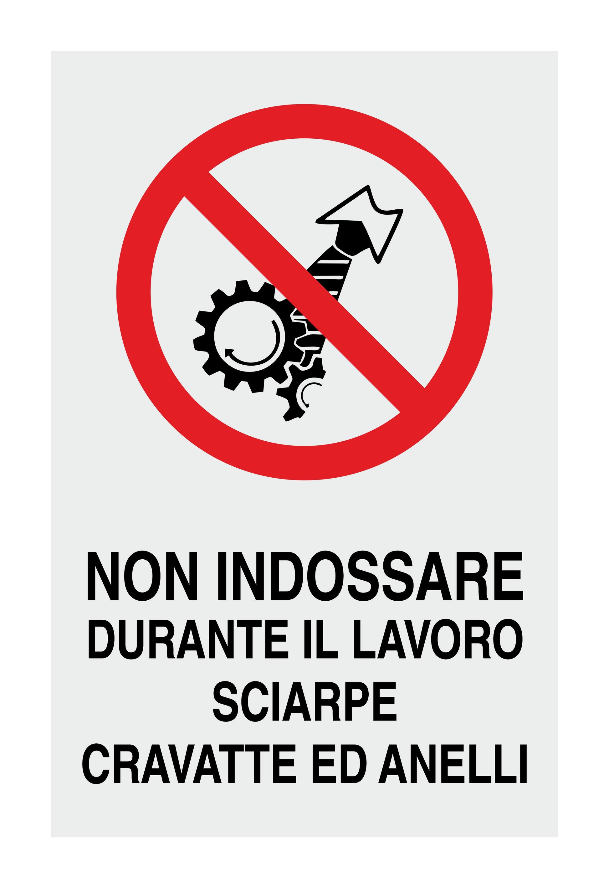 GLOBAL CARTELLO SEGNALETICO - NON INDOSSARE DURANTE IL LAVORO SCIARPE CRAVATTE ED ANELLI - Adesivo Extra Resistente, Pannello in Forex, Pannello In Alluminio
