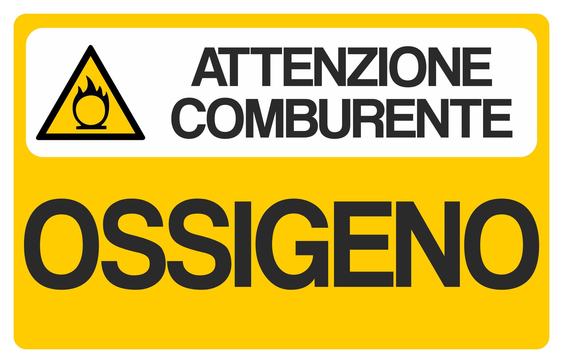 GLOBAL CARTELLO SEGNALETICO - ossigeno attenzione comburente - Adesivo Resistente, Pannello in Forex, Pannello In Alluminio