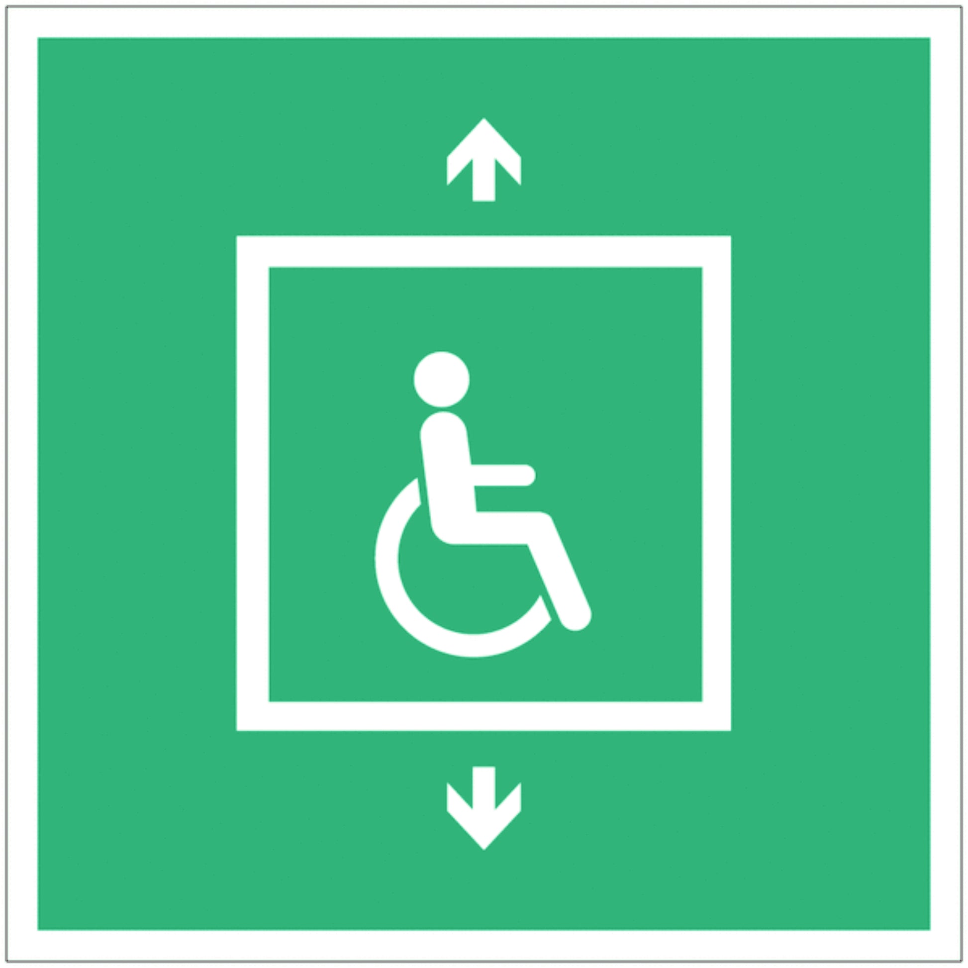 GLOBAL CARTELLO SEGNALETICO QUADRATO - Ascensore di evacuazione per persone con mobilità ridotta - Adesivo Extra Resistente, Pannello in Forex, Pannello In Alluminio