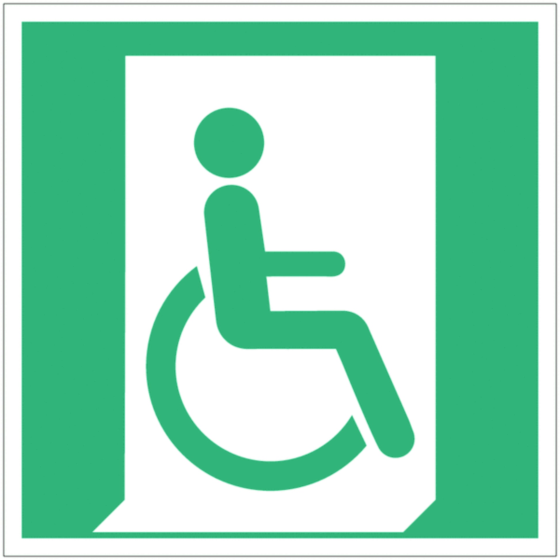 GLOBAL CARTELLO SEGNALETICO QUADRATO - Uscita di emergenza disabili a destra - Adesivo Extra Resistente, Pannello in Forex, Pannello In Alluminio