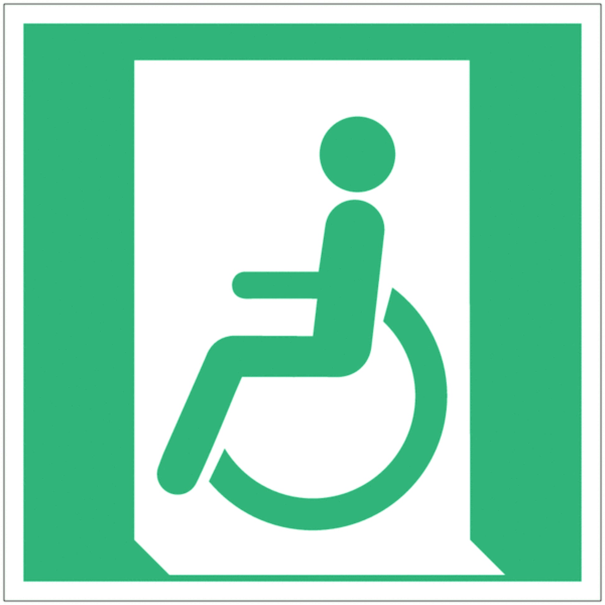 GLOBAL CARTELLO SEGNALETICO QUADRATO - Uscita di emergenza disabili a sinistra - Adesivo Extra Resistente, Pannello in Forex, Pannello In Alluminio
