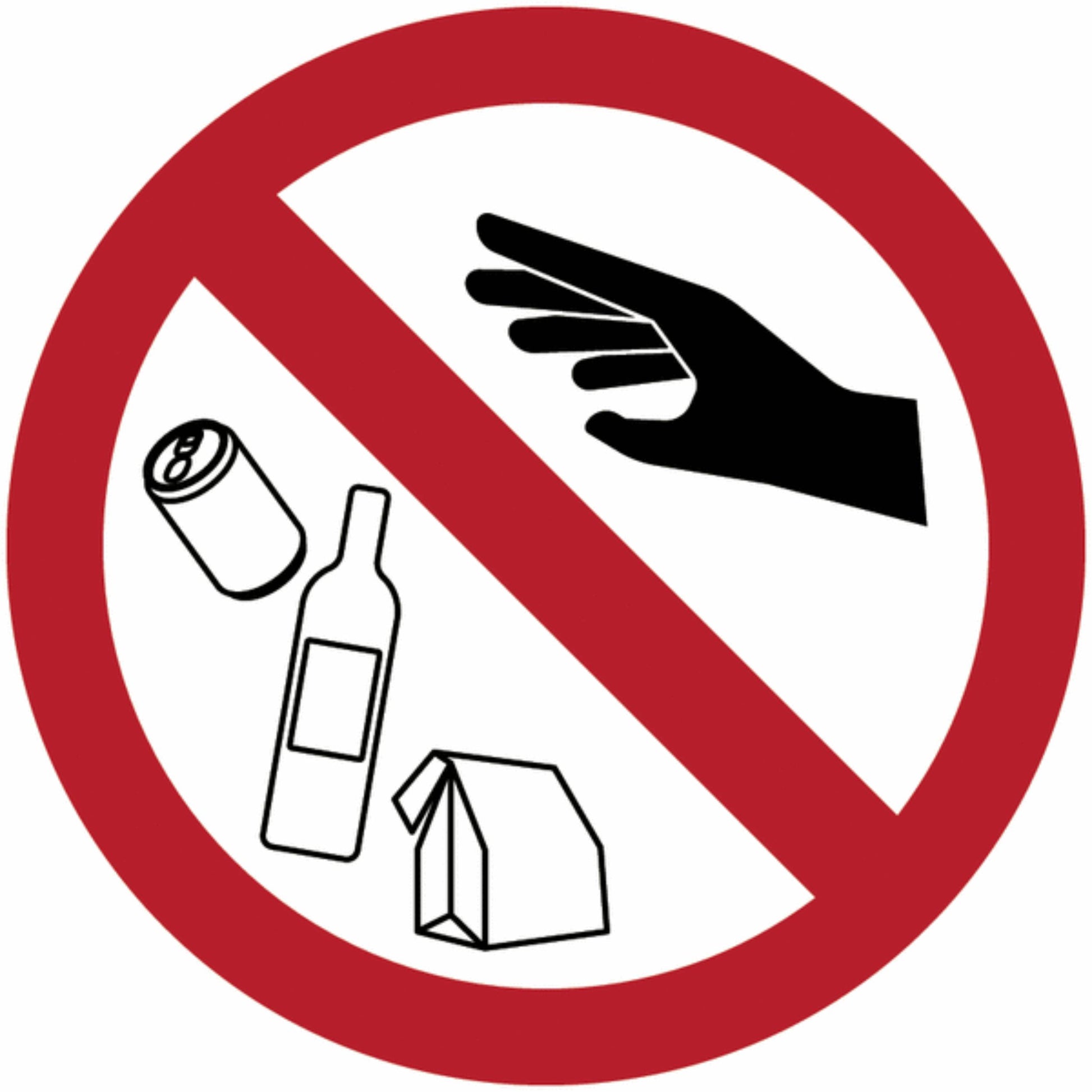 GLOBAL CARTELLO SEGNALETICO ROTONDO - Vietato gettare rifiuti - Adesivo Extra Resistente, Pannello in Forex, Pannello In Alluminio