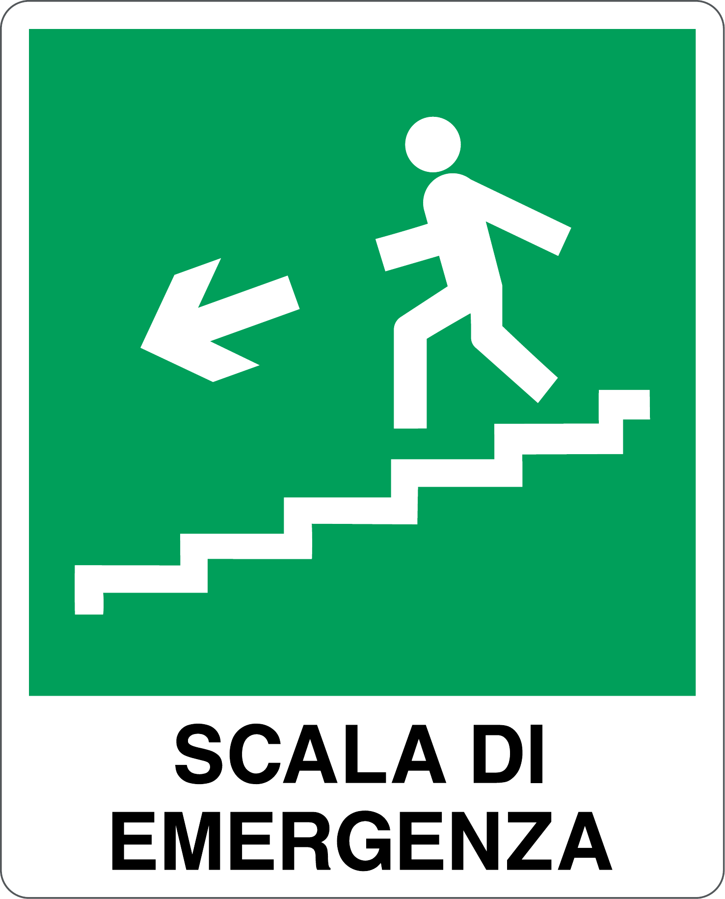 GLOBAL CARTELLO SEGNALETICO - SCALA DI EMERGENZA DISCESA SINISTRA - Adesivo Resistente, Pannello in Forex, Pannello In Alluminio