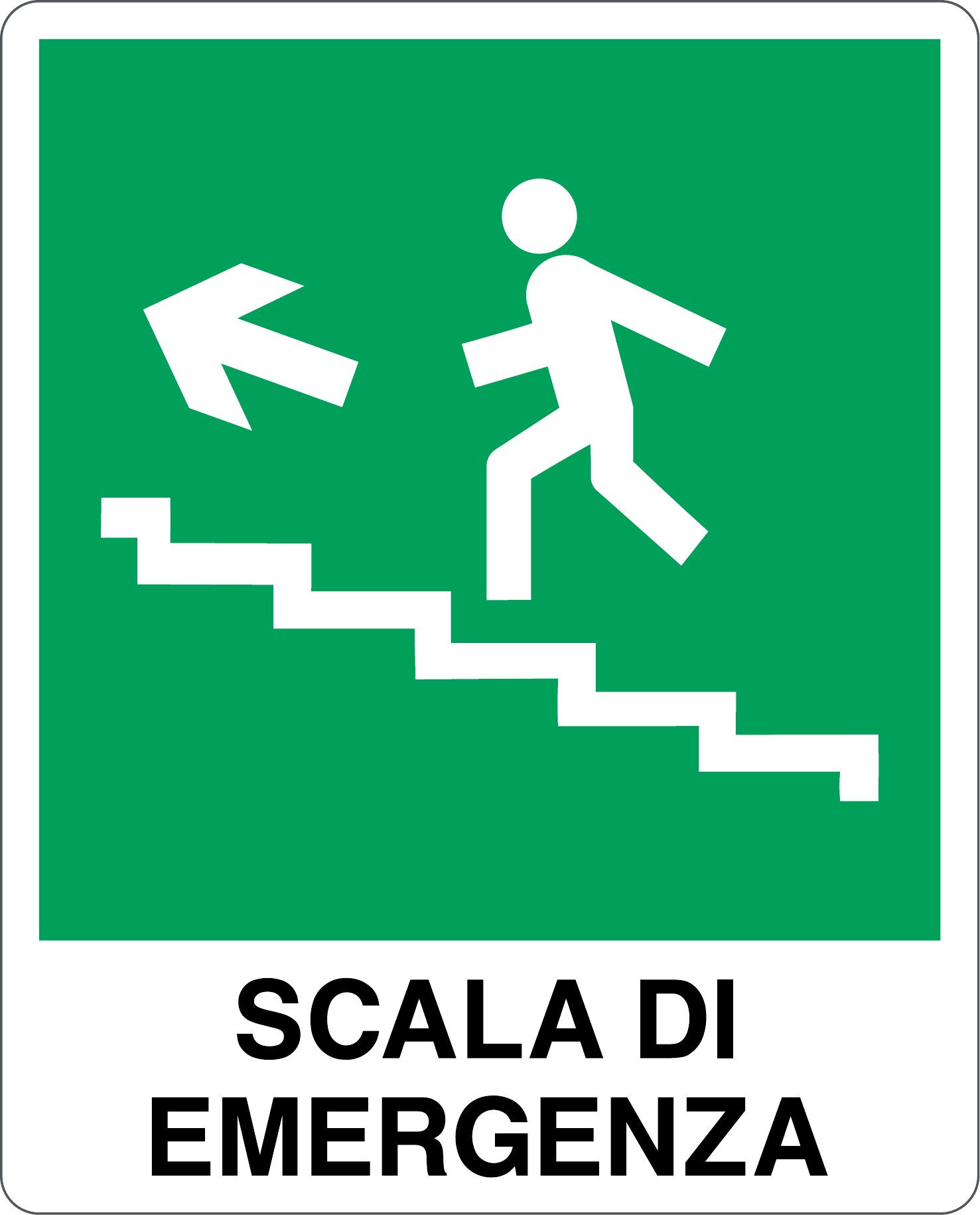 GLOBAL CARTELLO SEGNALETICO - SCALA DI EMERGENZA SALITA SINISTRA - Adesivo Resistente, Pannello in Forex, Pannello In Alluminio