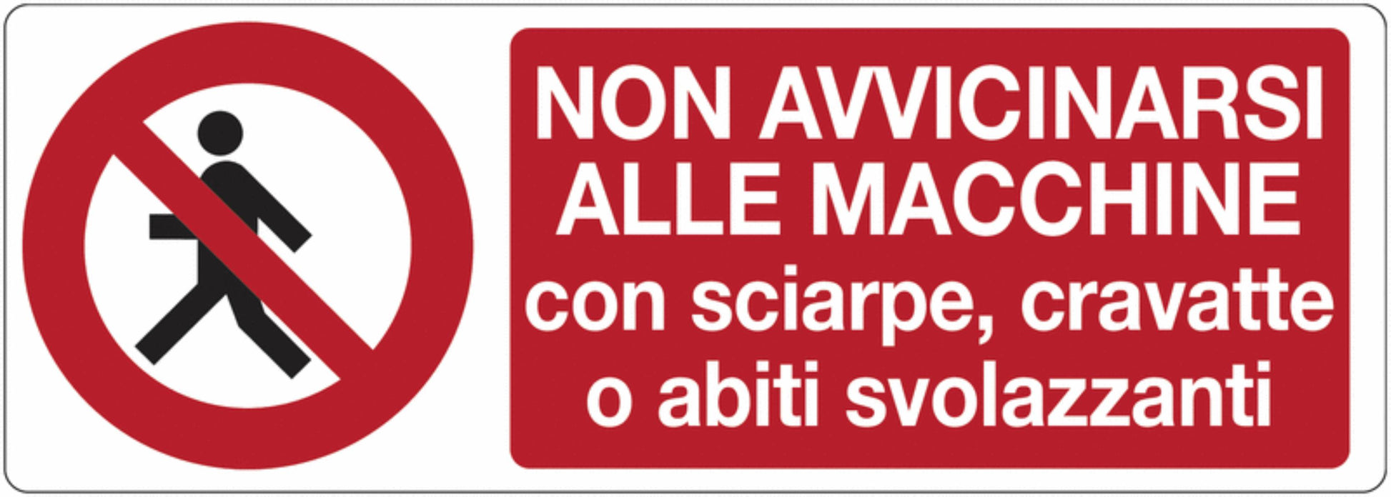 GLOBAL CARTELLO SEGNALETICO UNI - Non avvicinarsi alle macchine con sciarpe, cravatte o abiti svolazzanti - Adesivo Extra Resistente, Pannello in Forex, Pannello In Alluminio