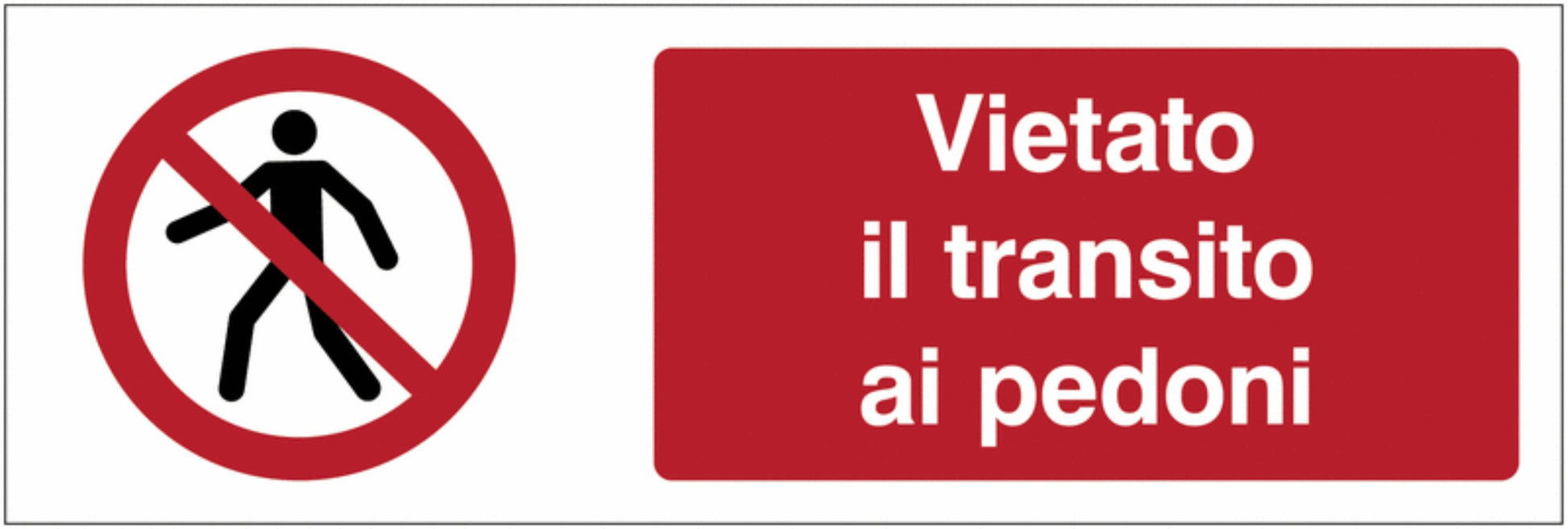 GLOBAL CARTELLO SEGNALETICO UNI - Vietato il transito ai pedoni - Adesivo Extra Resistente, Pannello in Forex, Pannello In Alluminio