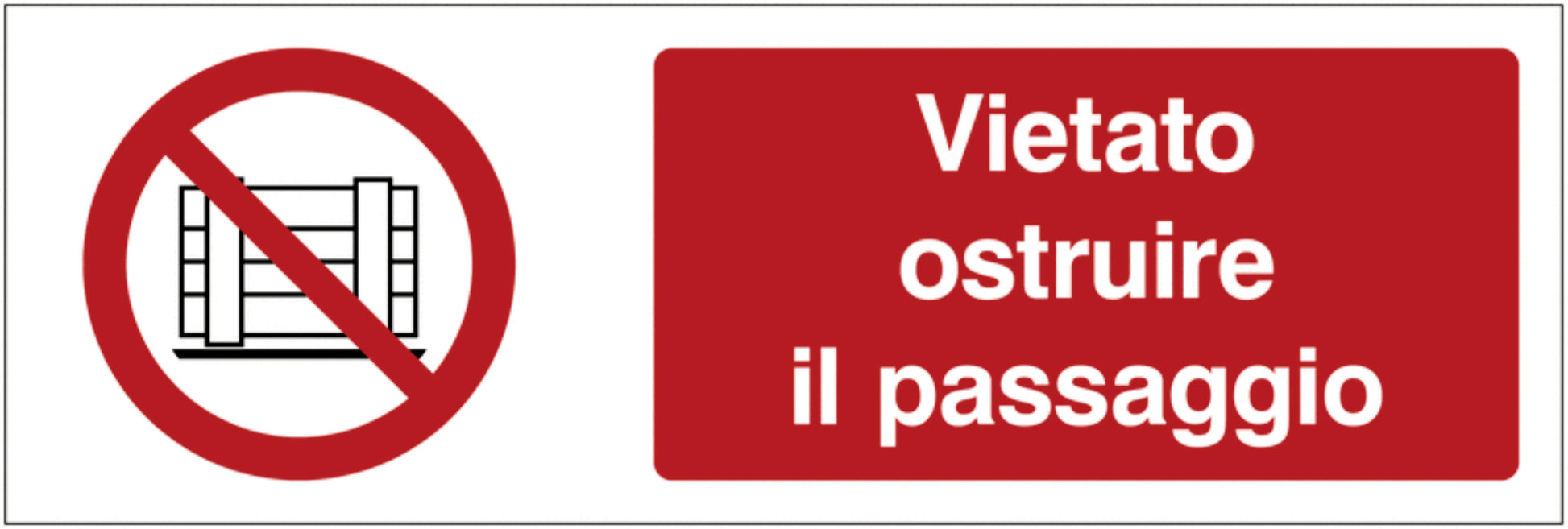 GLOBAL CARTELLO SEGNALETICO UNI - Vietato ostruire il passaggio - Adesivo Extra Resistente, Pannello in Forex, Pannello In Alluminio