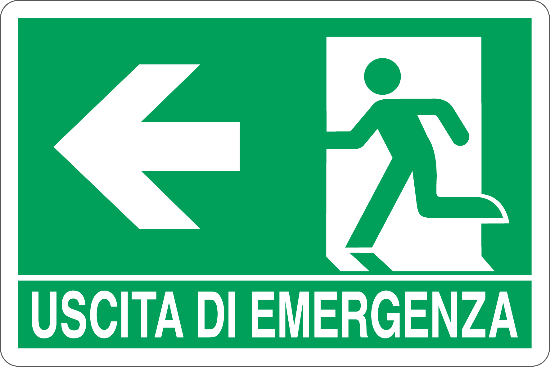 GLOBAL CARTELLO SEGNALETICO - USCITA DI EMERGENZA A SINISTRA - Adesivo Resistente, Pannello in Forex, Pannello In Alluminio