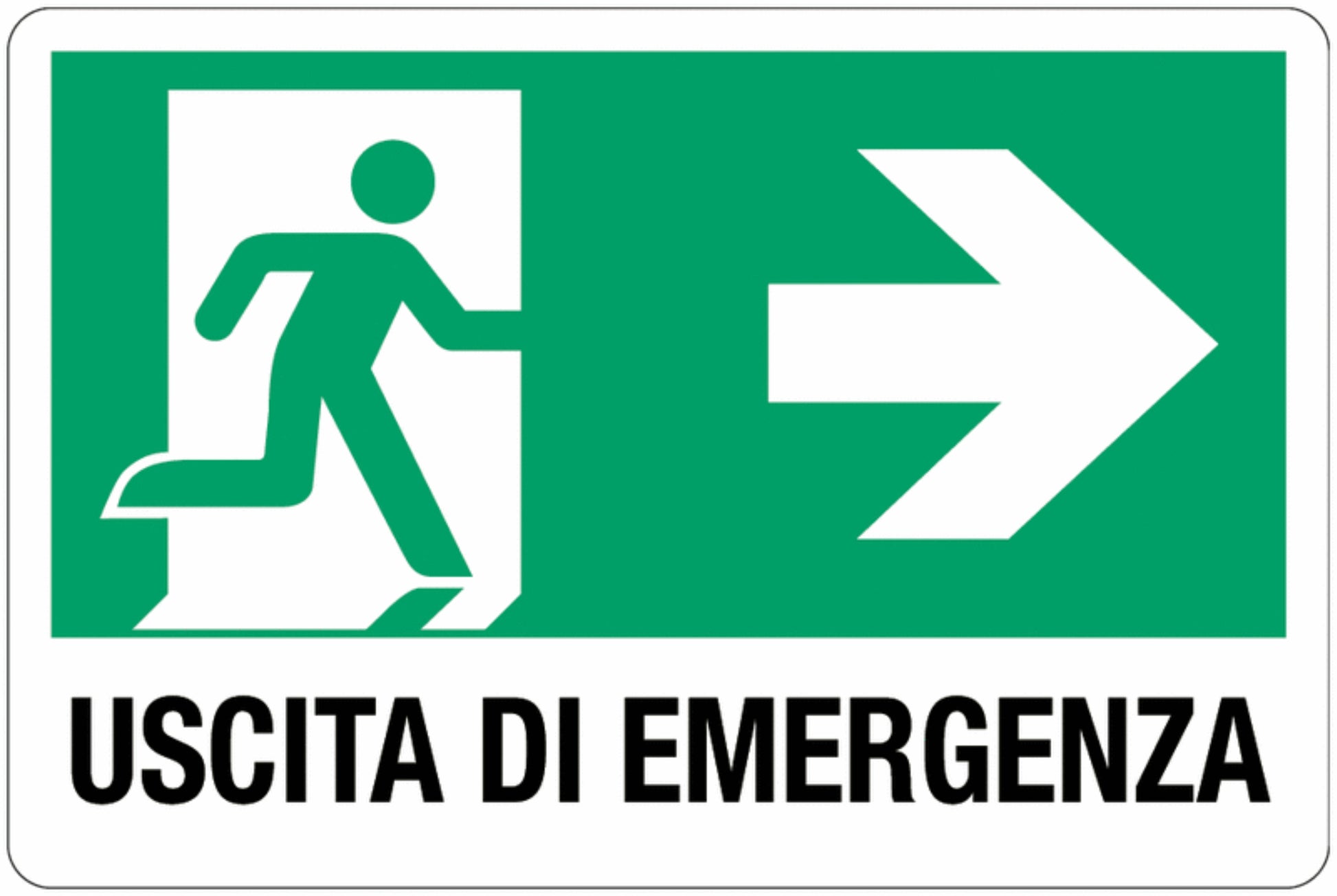 GLOBAL CARTELLO SEGNALETICO - Uscita di emergenza - con uomo che corre a destra - Adesivo Extra Resistente, Pannello in Forex, Pannello In Alluminio