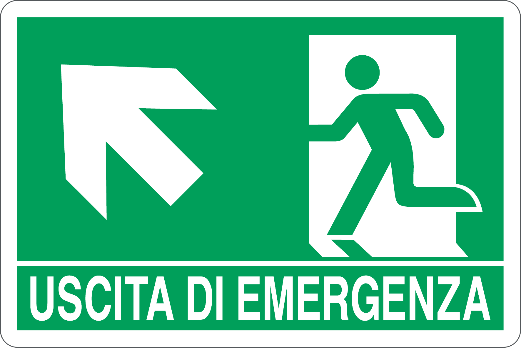 GLOBAL CARTELLO SEGNALETICO - USCITA DI EMERGENZA SALITA SINISTRA - Adesivo Resistente, Pannello in Forex, Pannello In Alluminio