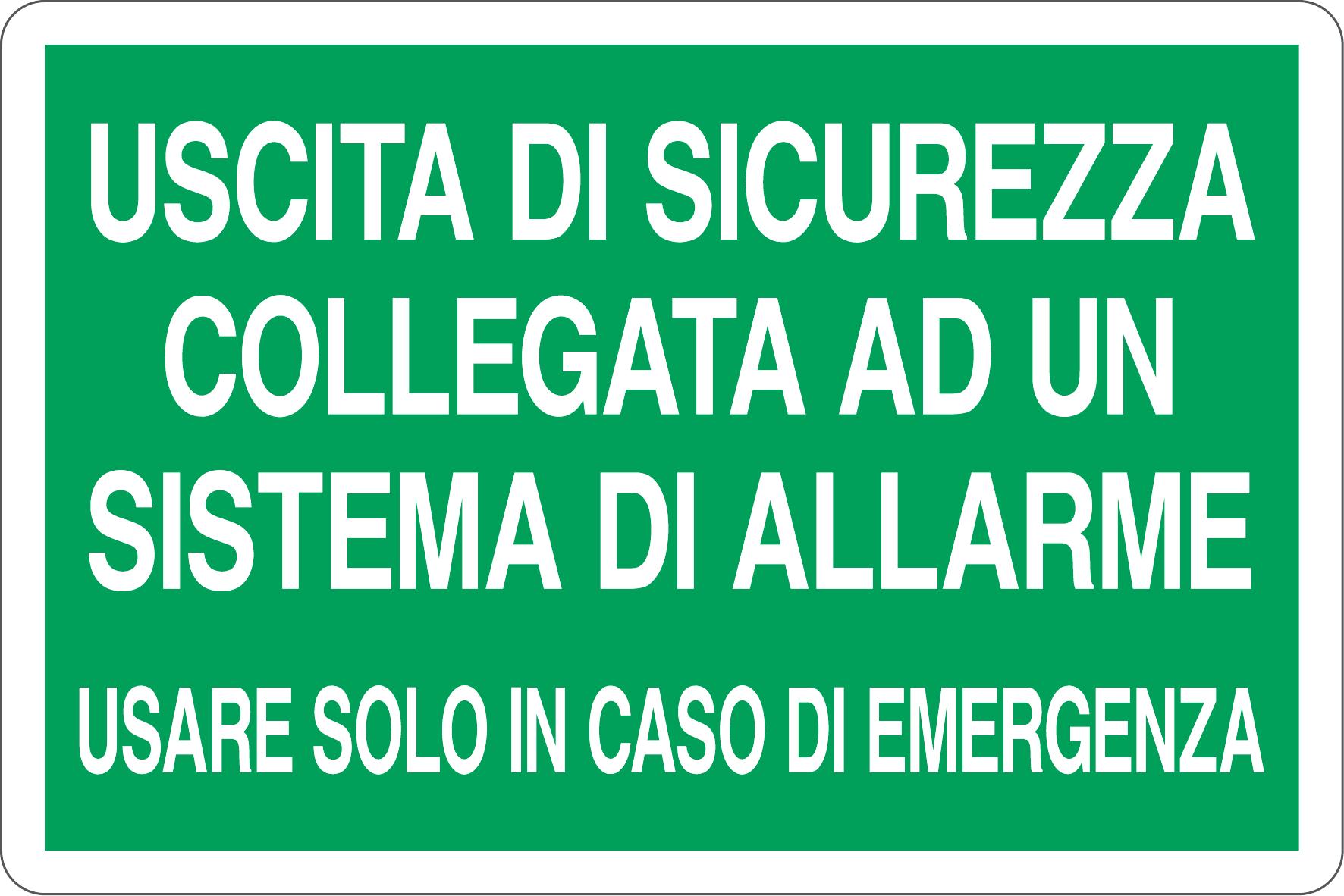 GLOBAL CARTELLO SEGNALETICO - USCITA DI SICUREZZA COLLEGATA AD UN SISTEMA DI ALLARME - Adesivo Resistente, Pannello in Forex, Pannello In Alluminio