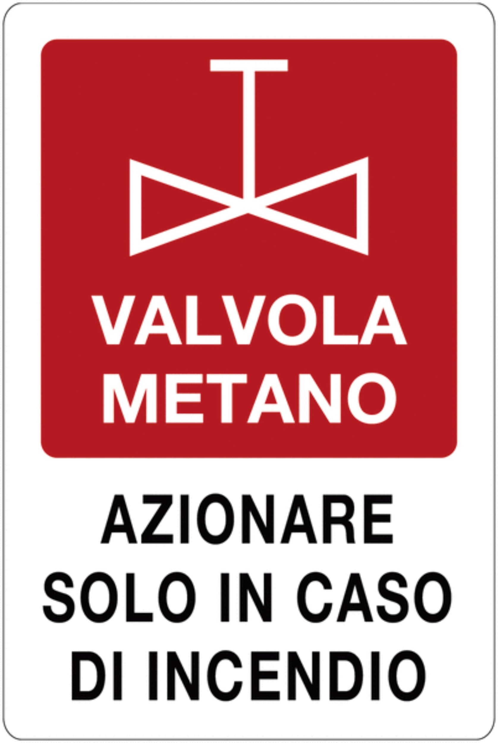 GLOBAL CARTELLO SEGNALETICO - Valvola in metano. Azionare solo in caso di incendio - Adesivo Extra Resistente, Pannello in Forex, Pannello In Alluminio