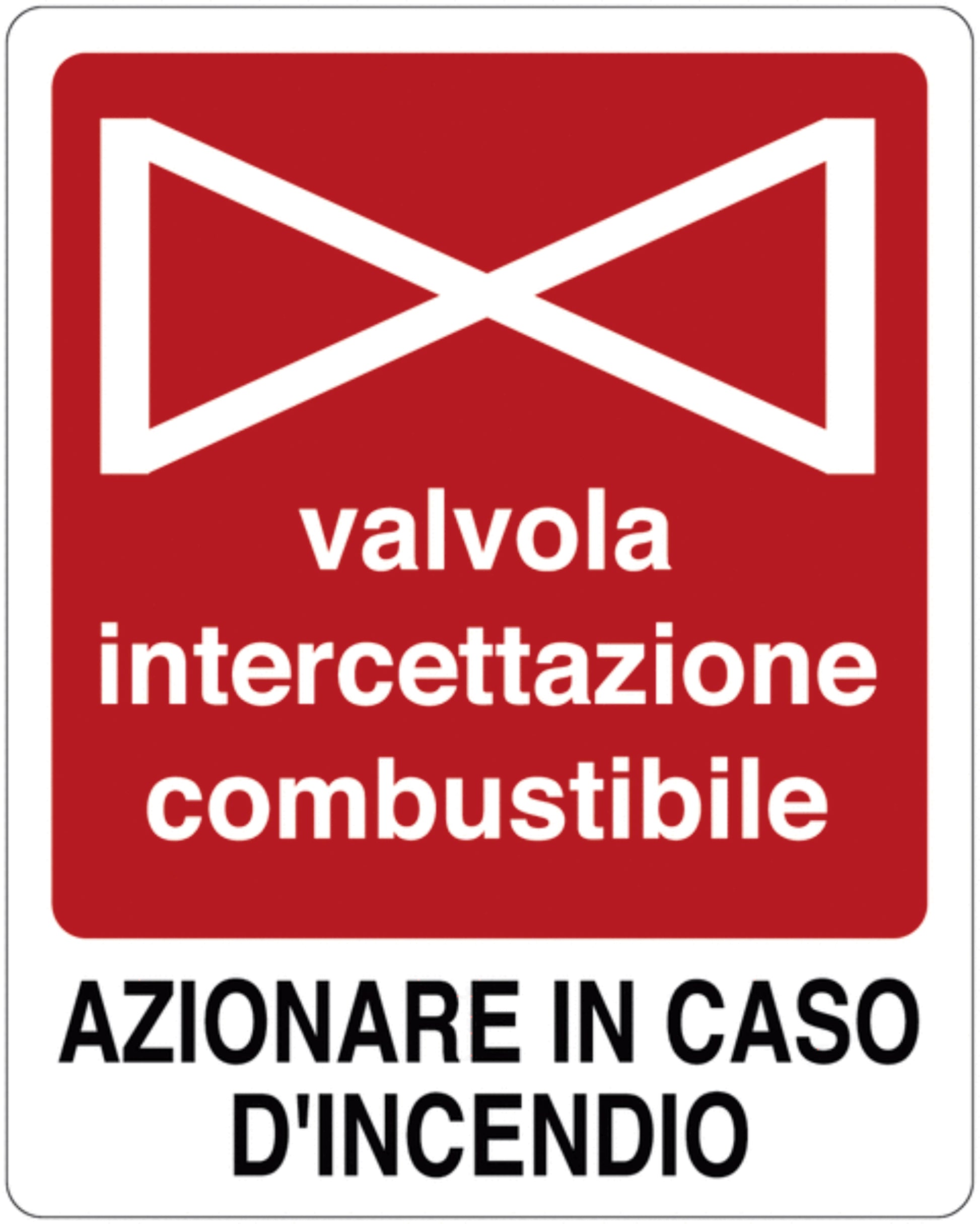 GLOBAL CARTELLO SEGNALETICO - Valvola intercettazione combustibile. Azionare in caso d'incendio - Adesivo Extra Resistente, Pannello in Forex, Pannello In Alluminio
