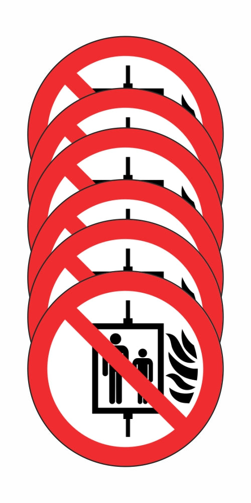 GLOBAL KIT DI 6 ADESIVI - DIVIETO USO ASCENSORE IN CASO DI INCENDIO - Pittogramma ISO 7010 Con Stampa Diretta U.V. (IDEALE ANCHE PER ESTERNO)