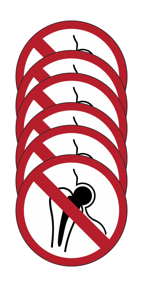 GLOBAL KIT DI 6 ADESIVI ROTONDI - Divieto di accesso ai portatori di protesi metalliche - Pittogramma ISO 7010 Con Stampa Diretta U.V. (IDEALE ANCHE PER ESTERNO)