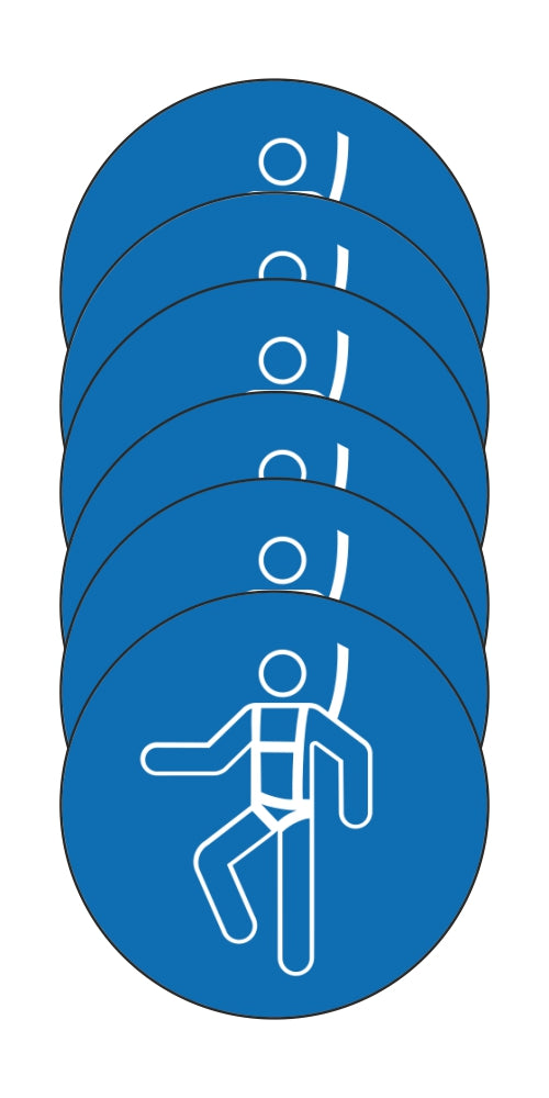 GLOBAL KIT DI 6 ADESIVI ROTONDI - OBBLIGO USO CINTURA DI SICUREZZA - Pittogramma ISO 7010 Con Stampa Diretta U.V. (IDEALE ANCHE PER ESTERNO)