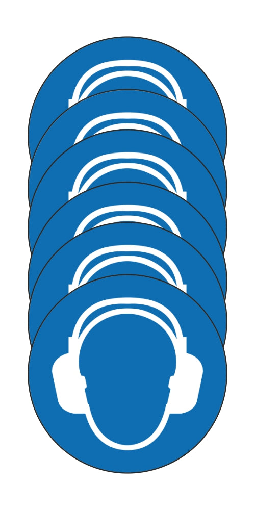 GLOBAL KIT DI 6 ADESIVI ROTONDI -OBBLIGO USO CUFFIA ANTIRUMORE - Pittogramma ISO 7010 Con Stampa Diretta U.V. (IDEALE ANCHE PER ESTERNO)