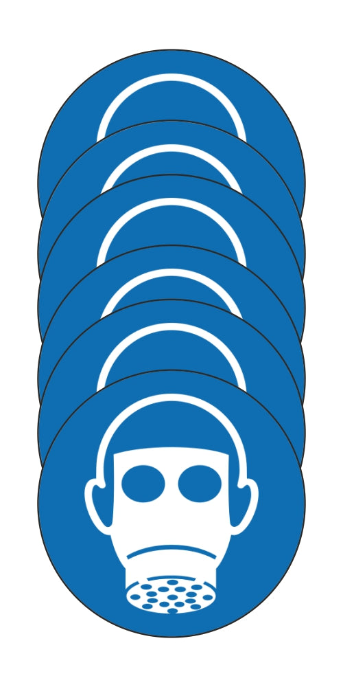 GLOBAL KIT DI 6 ADESIVI ROTONDI - OBBLIGO USO RESPIRATORE - Pittogramma ISO 7010 Con Stampa Diretta U.V. (IDEALE ANCHE PER ESTERNO)